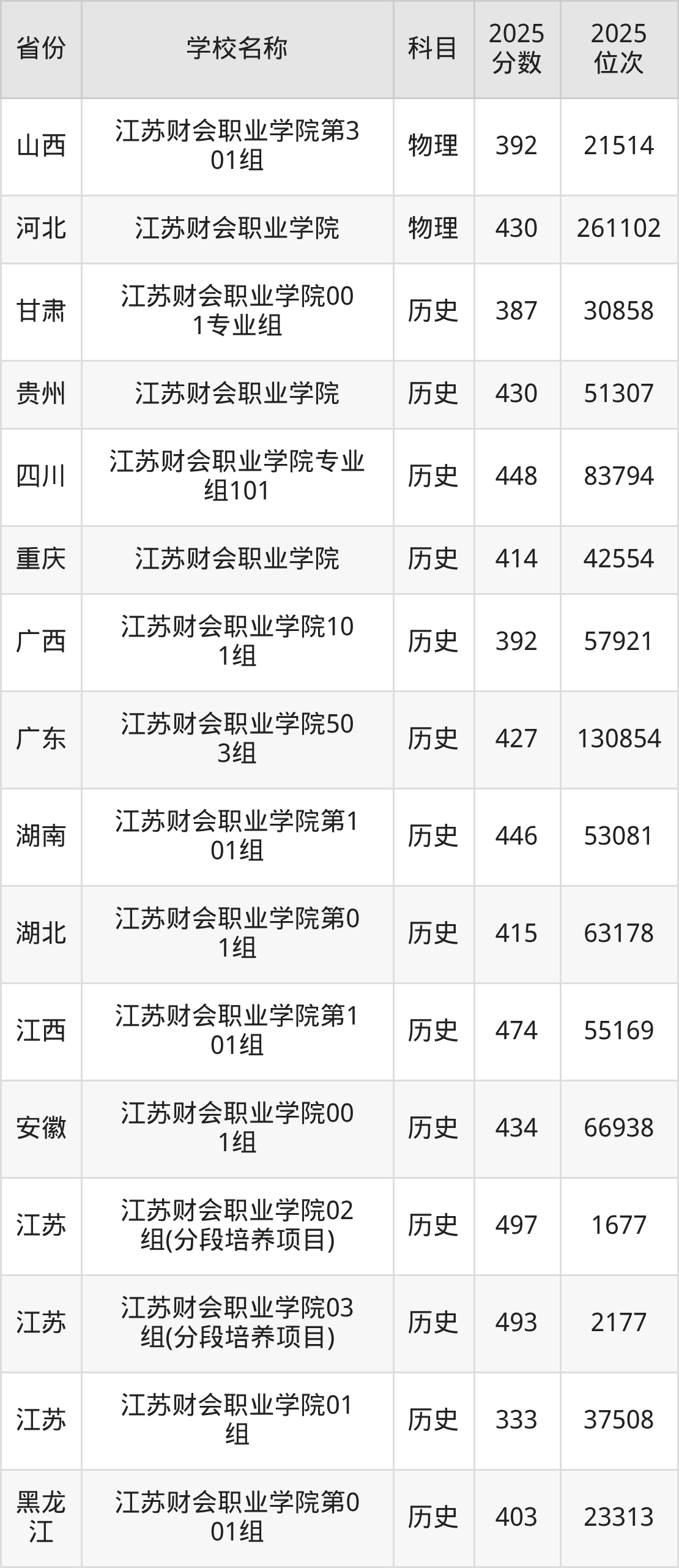 一、2025江苏财会职业学院录取分数线