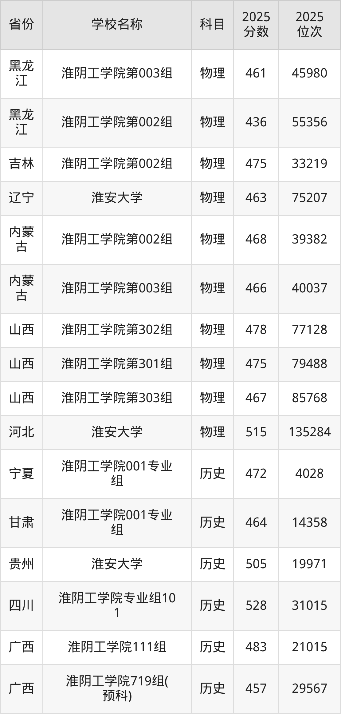 二、淮安大学各专业录取分数线