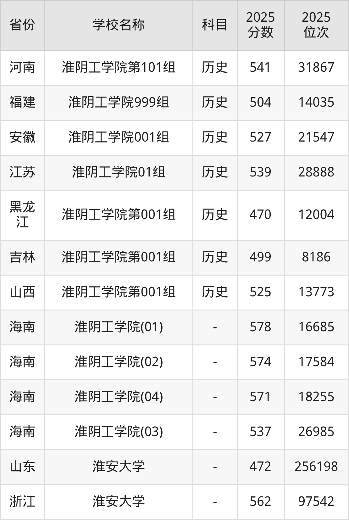 一、2025淮安大学录取分数线