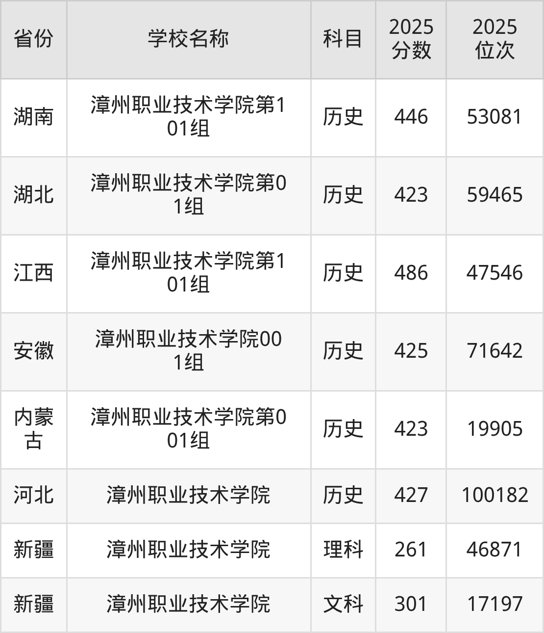 一、2025漳州职业技术学院录取分数线