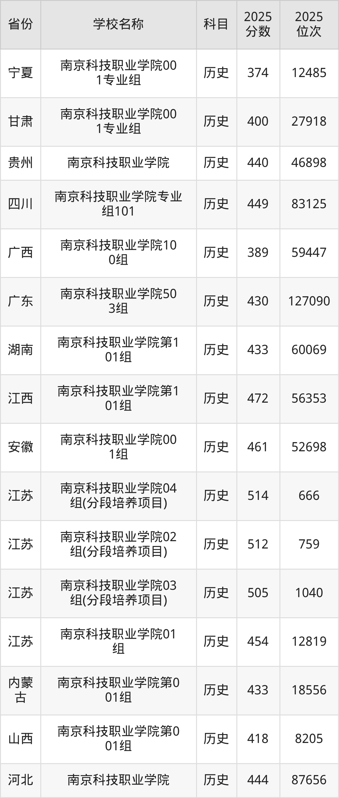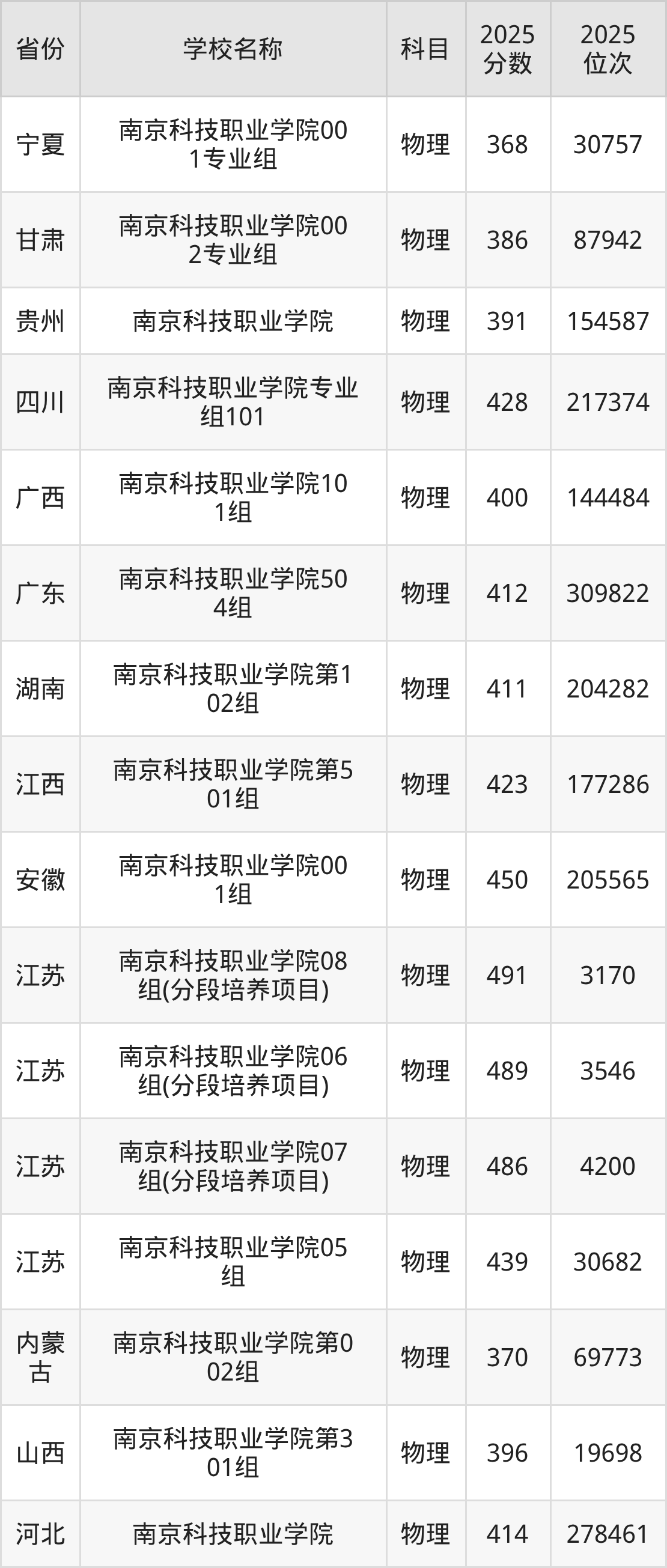 一、2025南京科技职业学院录取分数线
