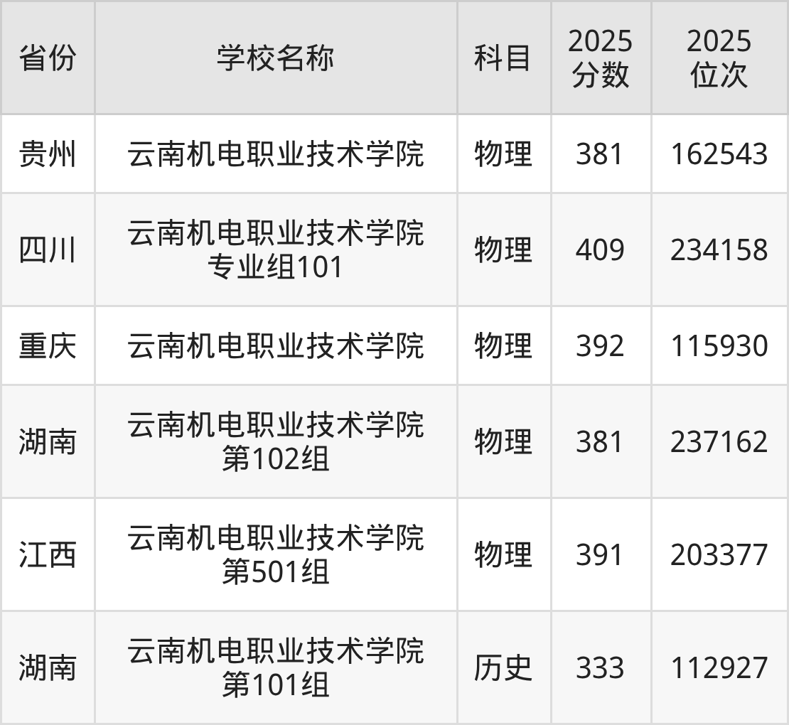 2025年云南机电职业技术学院在全国各省专科的最低录取分数线在333~409分之间。四川物理类高考生最低409分能上云南机电职业技术学院、重庆物理类高考生最低392分能上云南机电职业技术学院……下文将展示云南机电职业技术学院在全国5个高考省份中的专科最低投档录取分汇总!