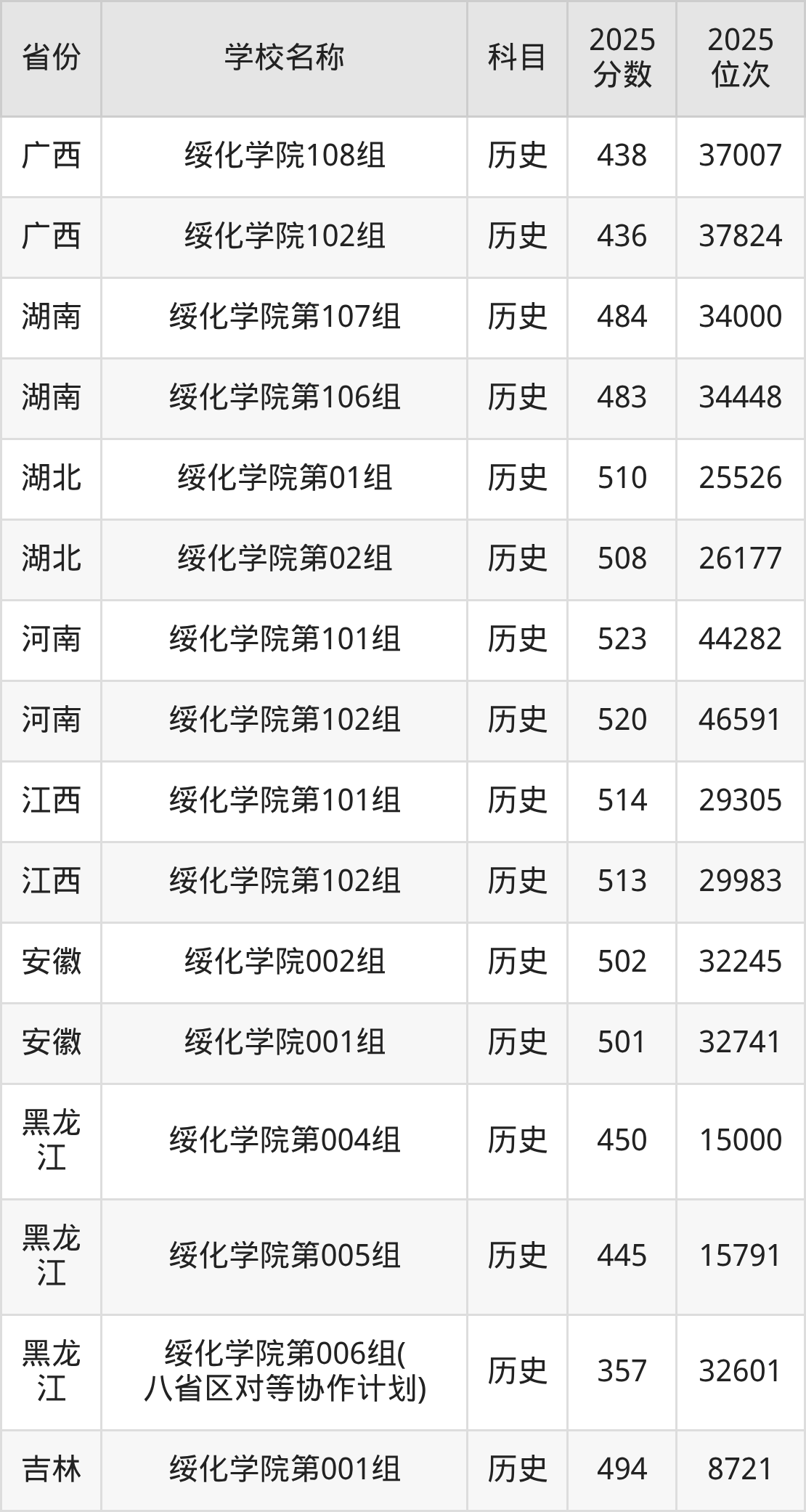 绥化学院2025年有6个专业组面向黑龙江省内首选了历史科目的考生招生: