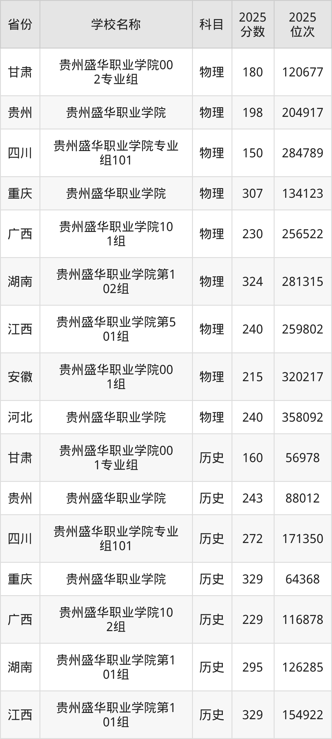 一、2025贵州盛华职业学院录取分数线