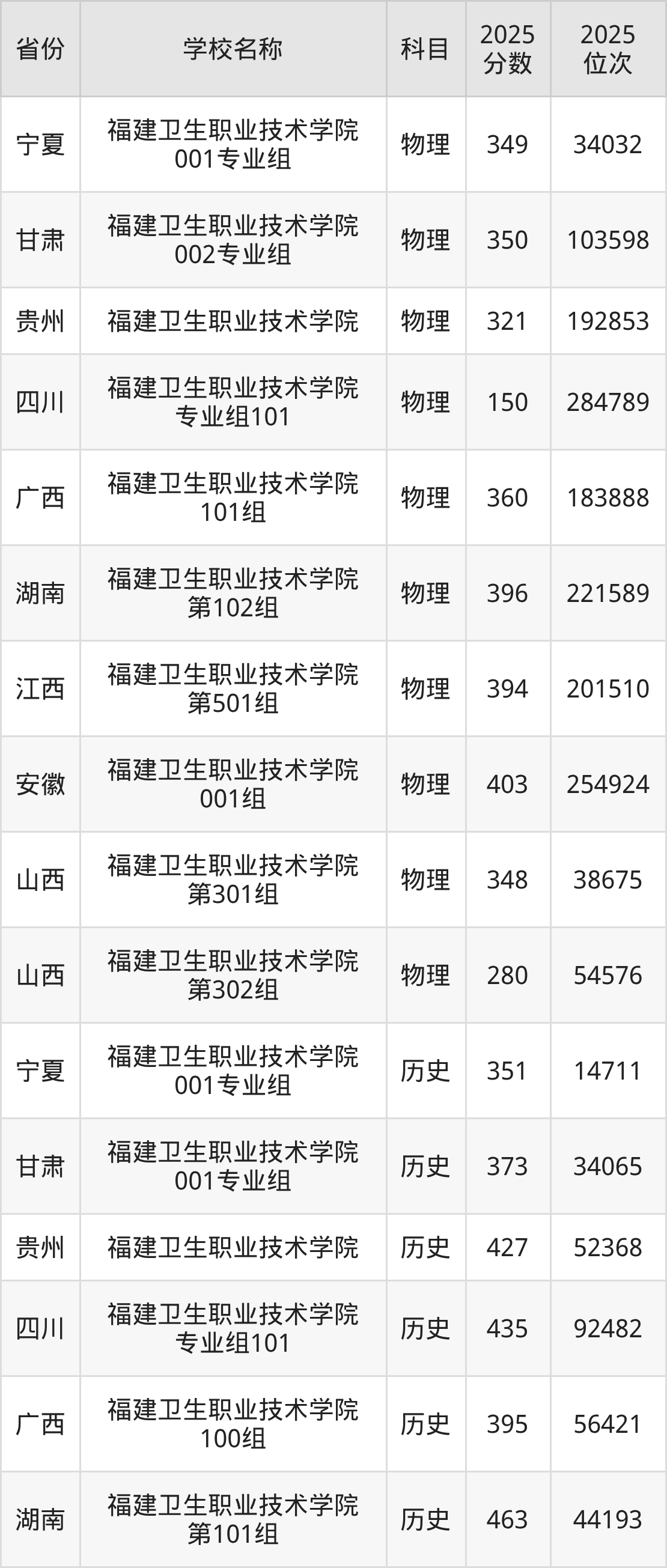 二、福建卫生职业技术学院各专业录取分数线