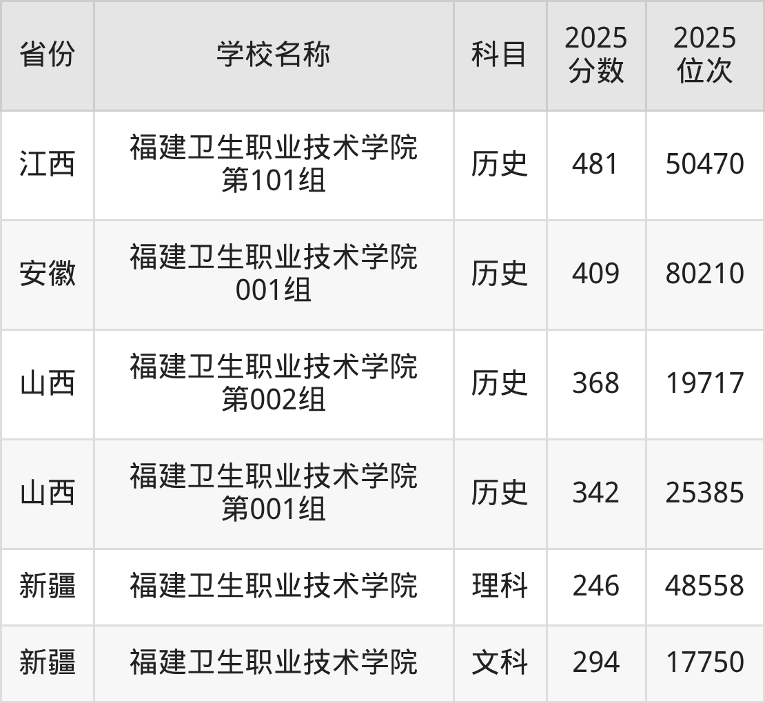 一、2025福建卫生职业技术学院录取分数线
