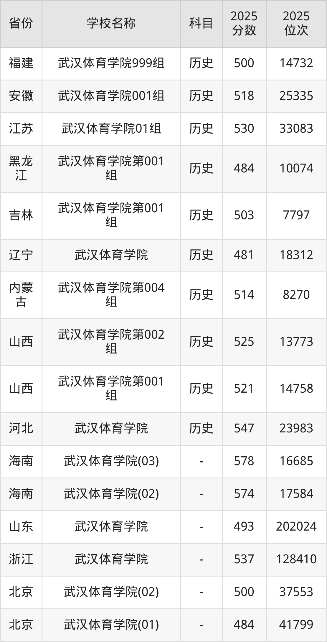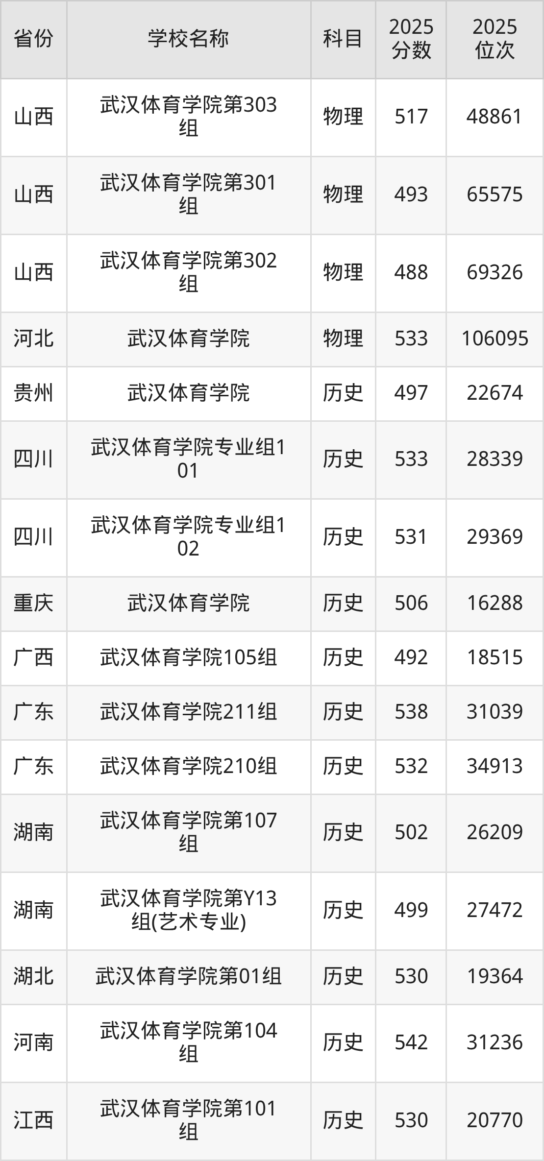 武汉体育学院2025年有1个专业组面向湖北省内首选了历史科目的考生招生: