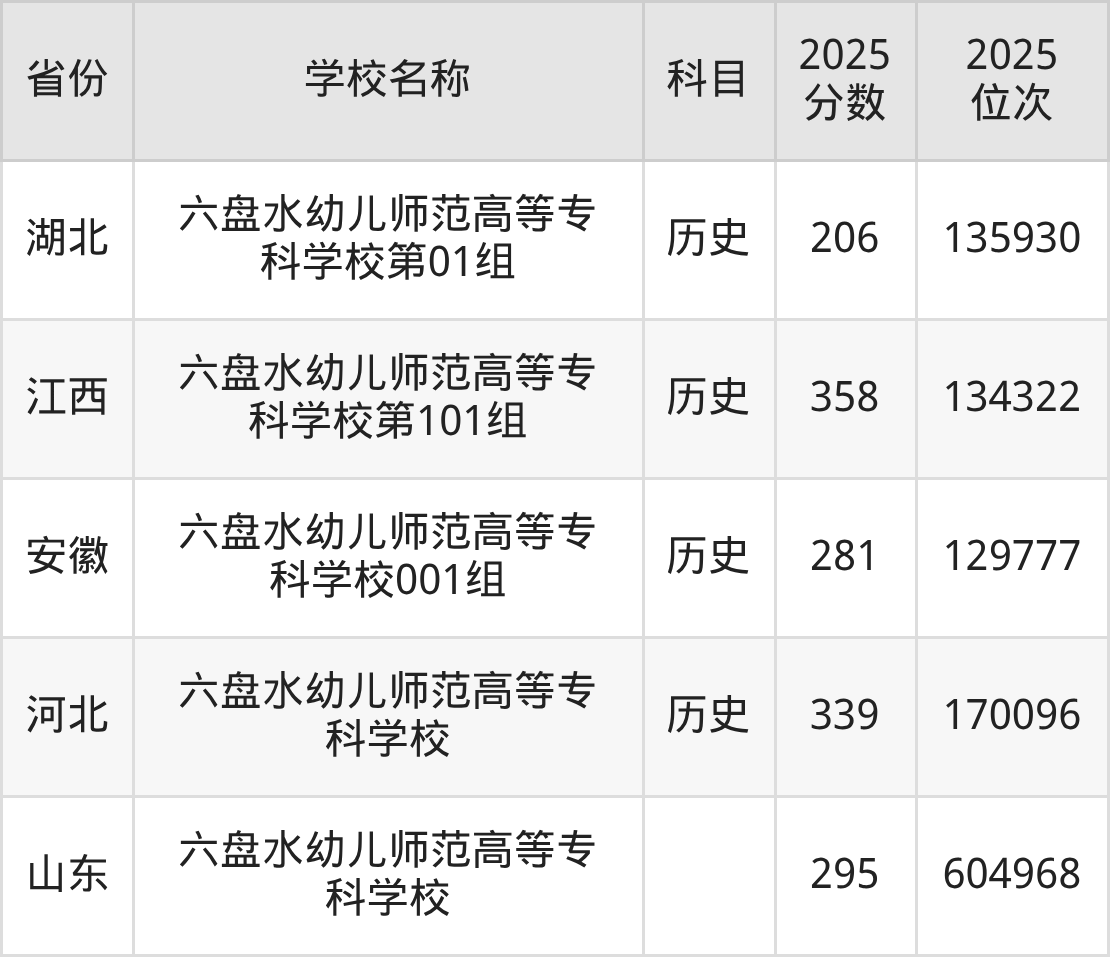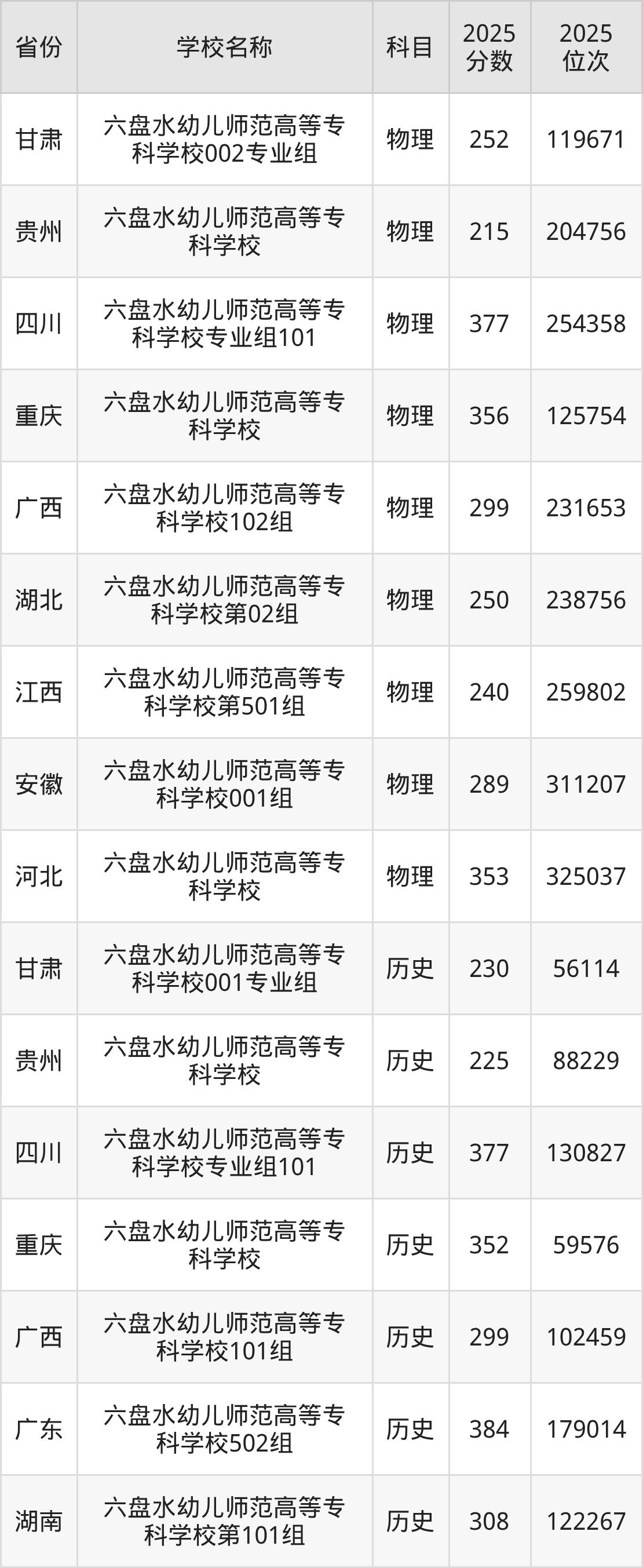 一、2025六盘水幼儿师范高等专科学校录取分数线