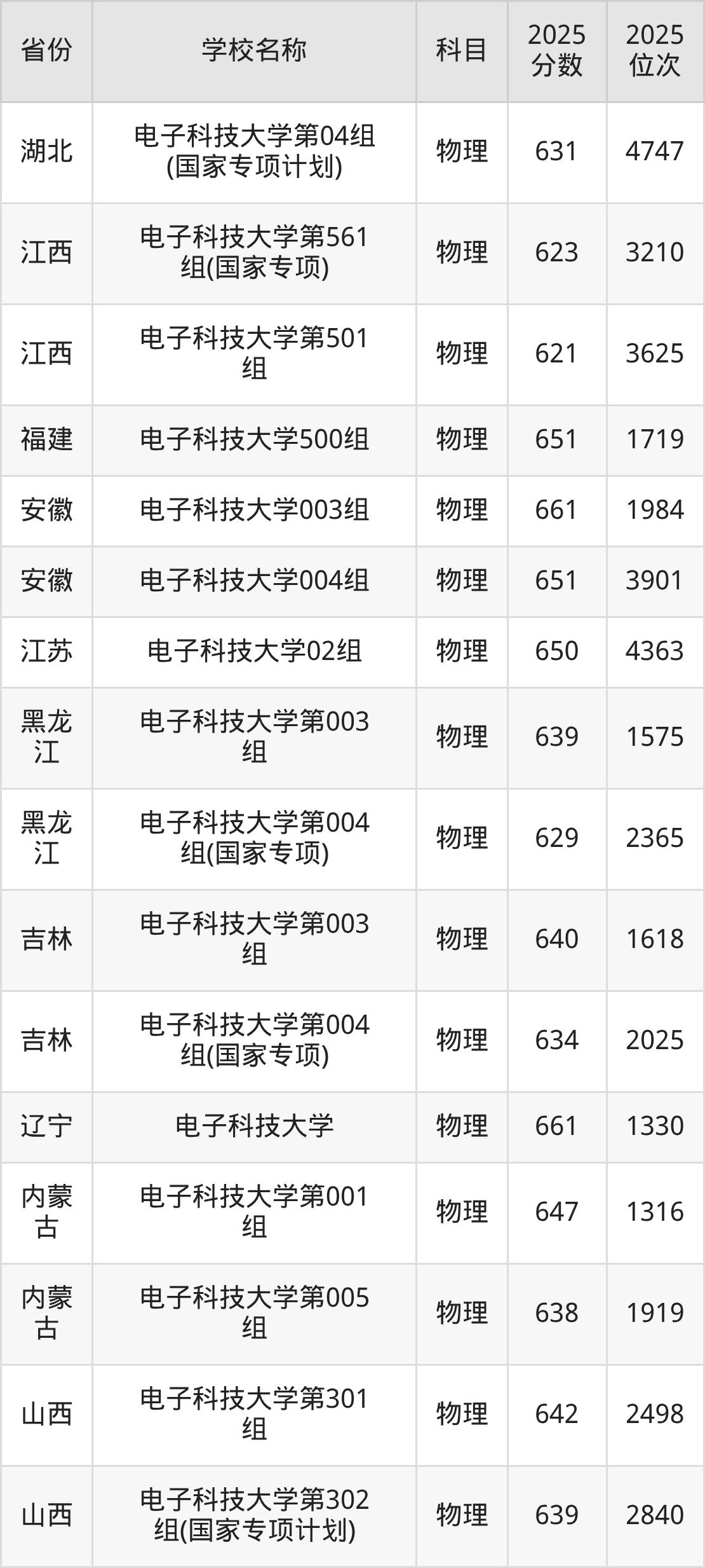 可见,电子科技大学的不同专业组,在“招生专业、录取分数线”等方面有较大区别。物理类专业组之间的分数线差距高达15分。