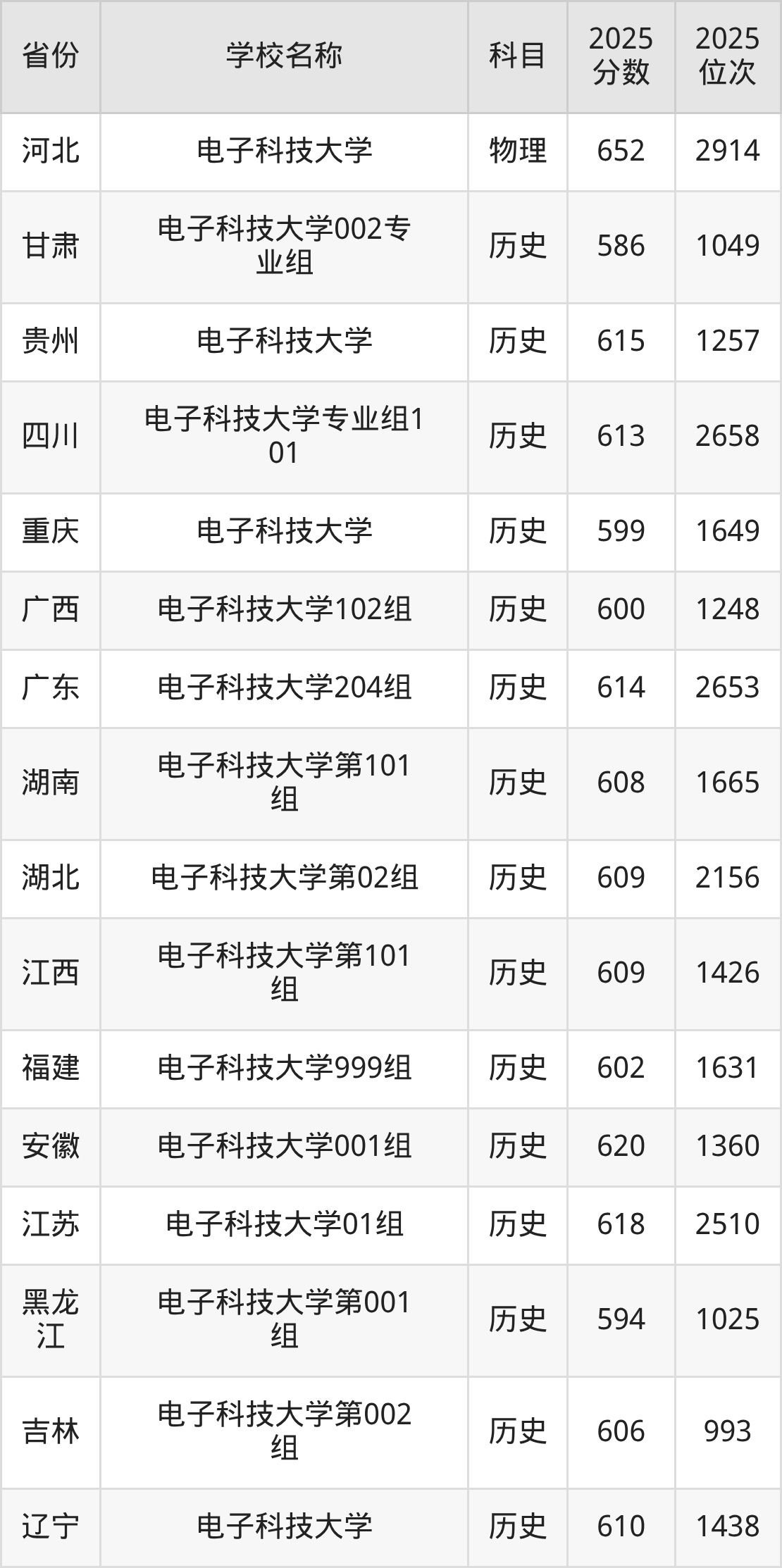 电子科技大学2025年有1个专业组面向四川省内首选了历史科目的考生招生:
