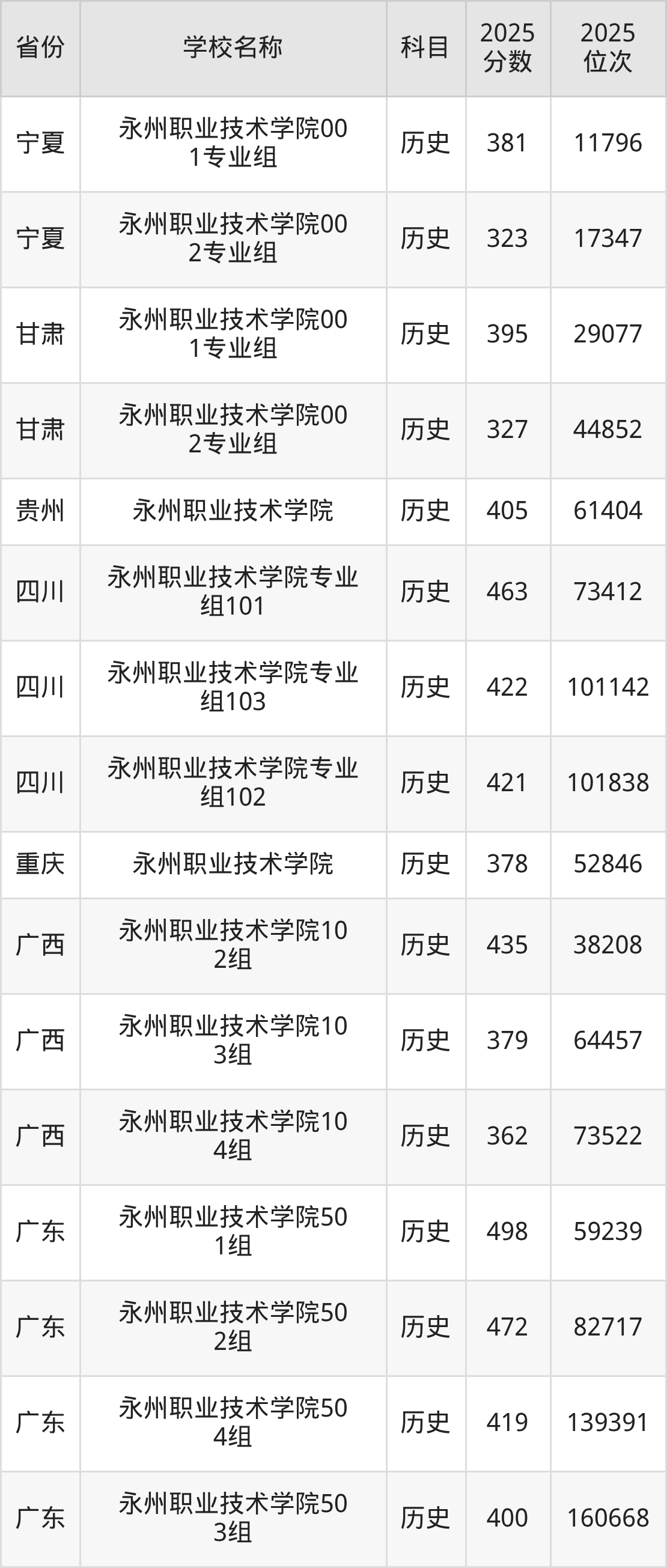 二、永州职业技术学院各专业录取分数线