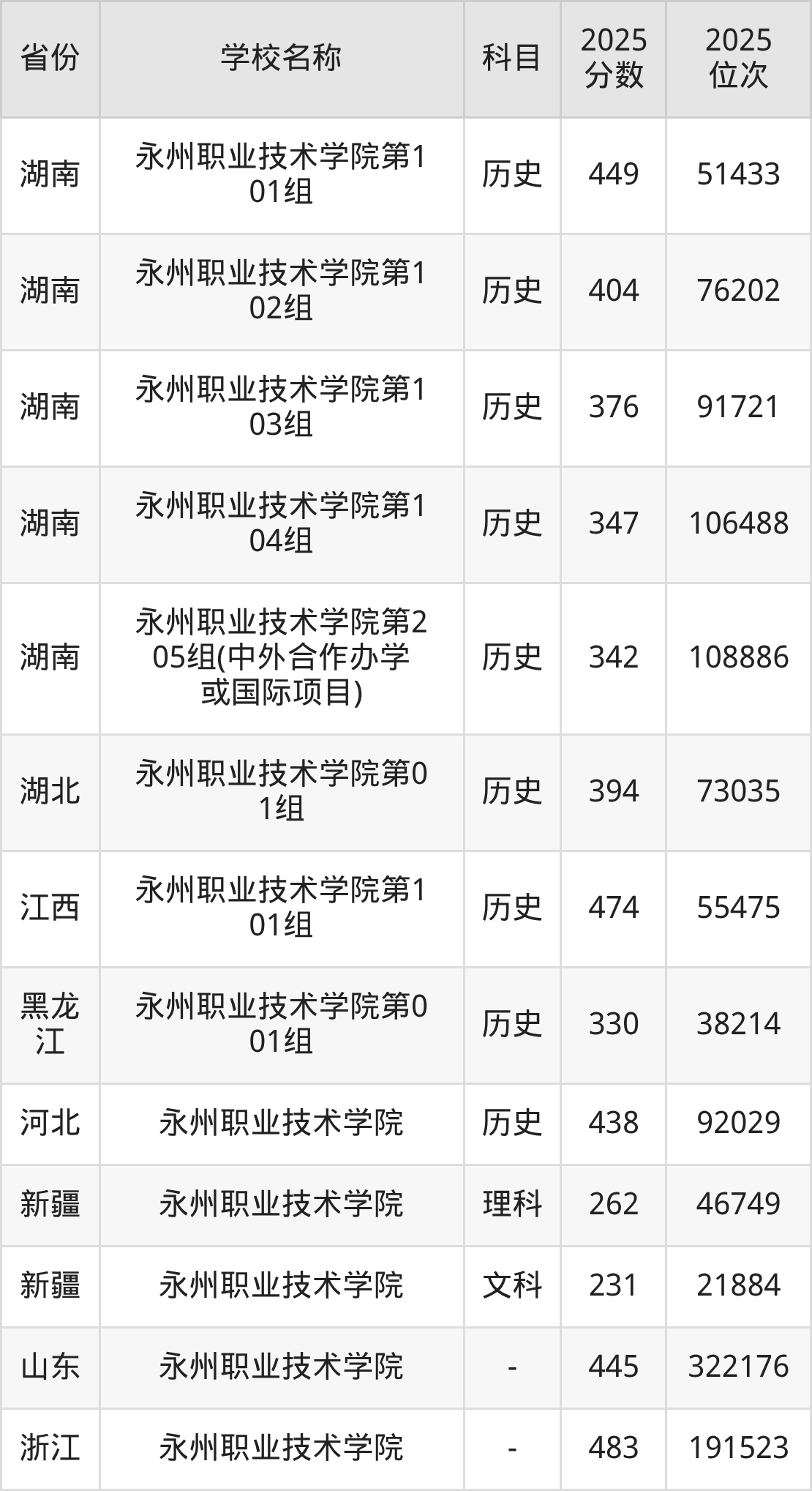 一、2025永州职业技术学院录取分数线