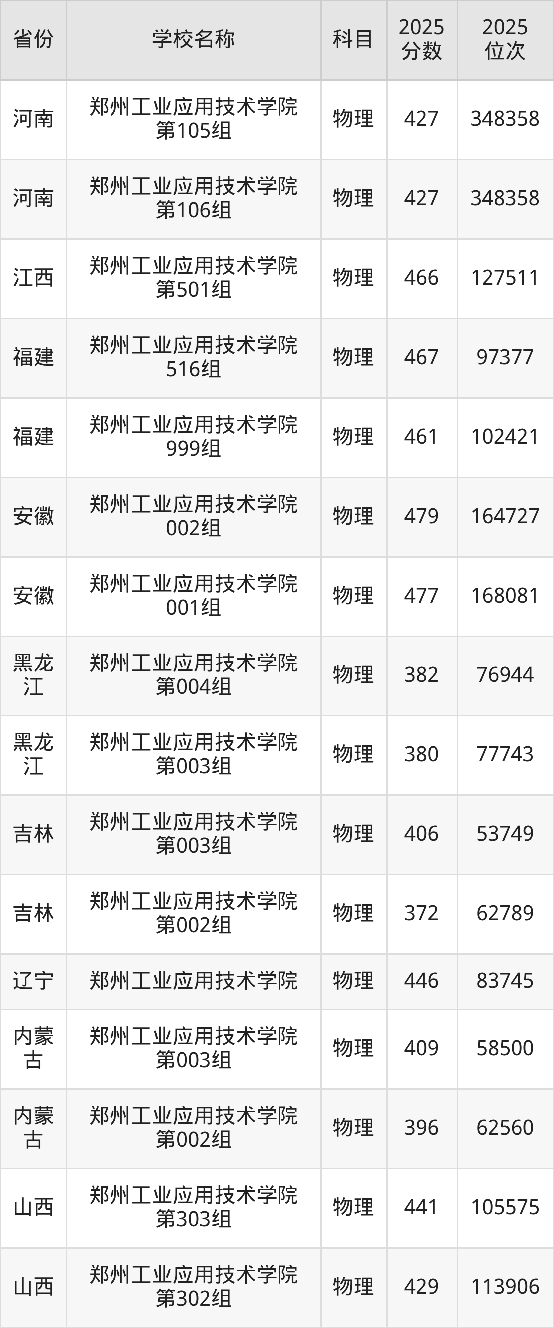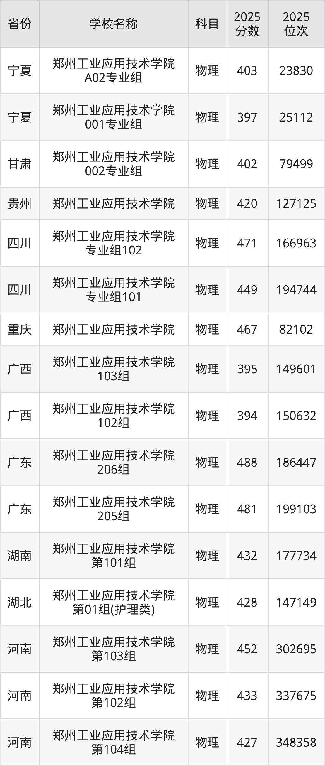 可见,郑州工业应用技术学院的不同专业组,在“招生专业、录取分数线”等方面有较大区别。物理类专业组之间的分数线差距高达25分。