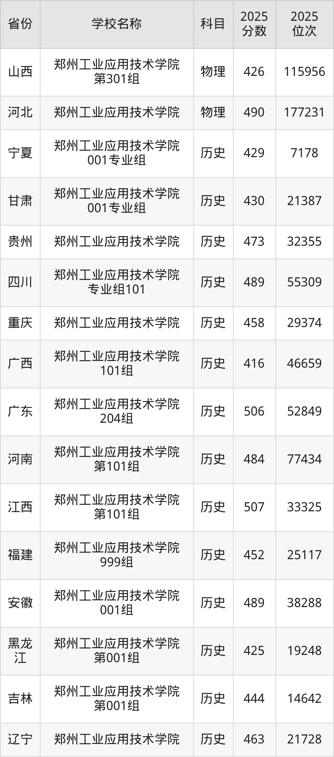 二、郑州工业应用技术学院各专业录取分数线