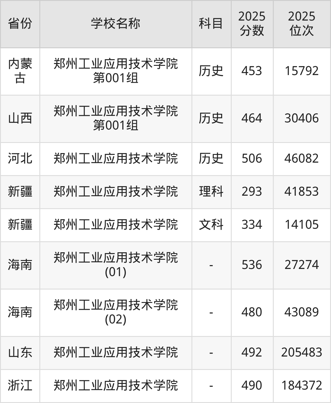 一、2025郑州工业应用技术学院录取分数线