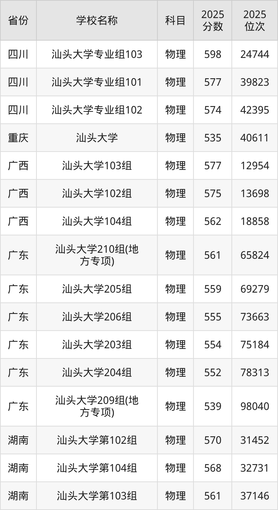 汕头大学2025年有7个专业组面向广东省内首选了物理科目的考生招生: