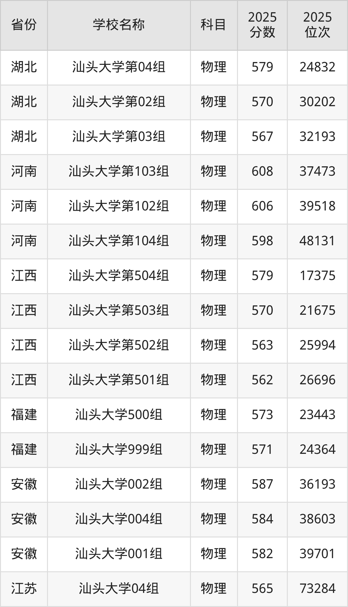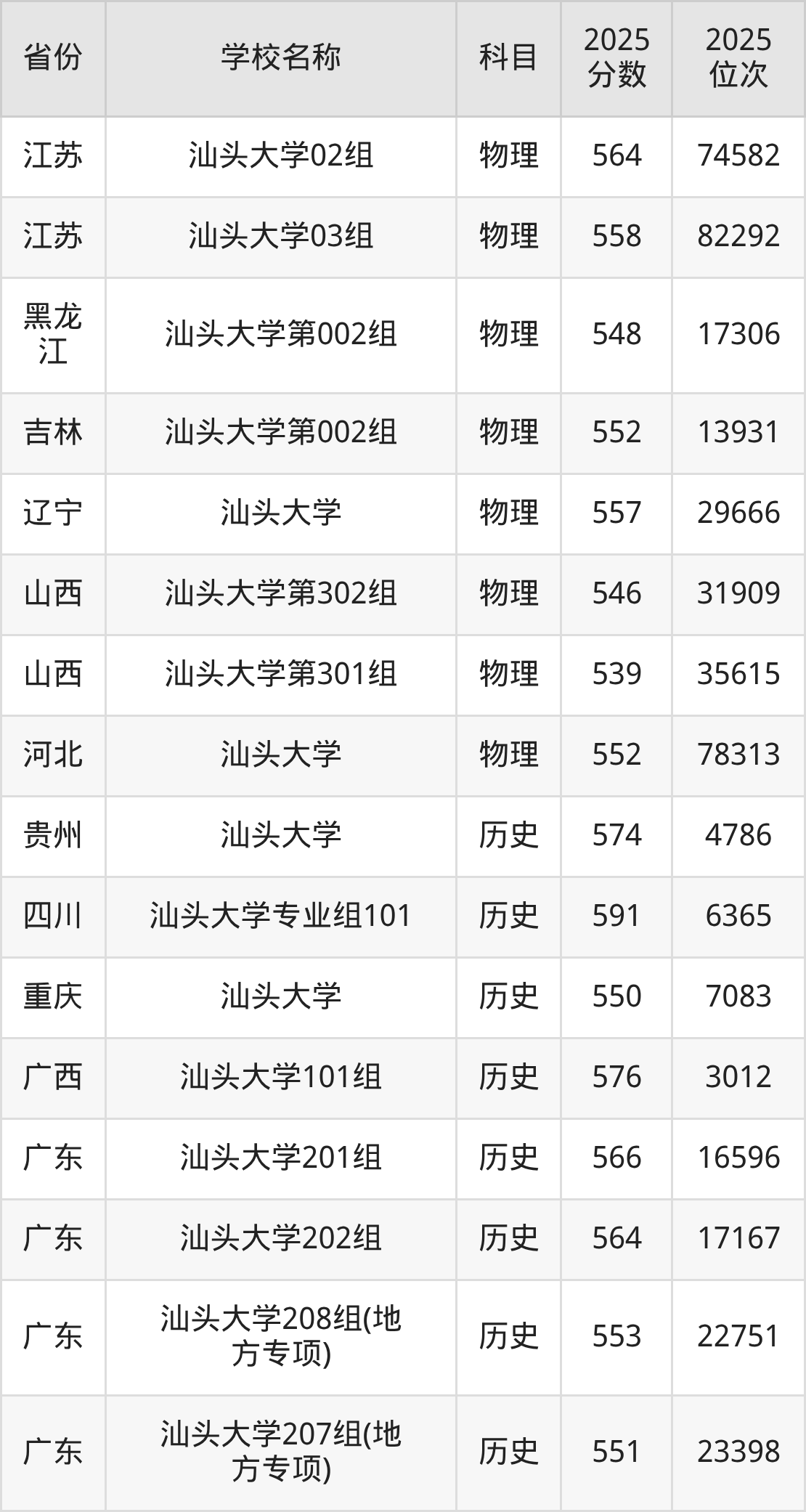 二、汕头大学各专业录取分数线