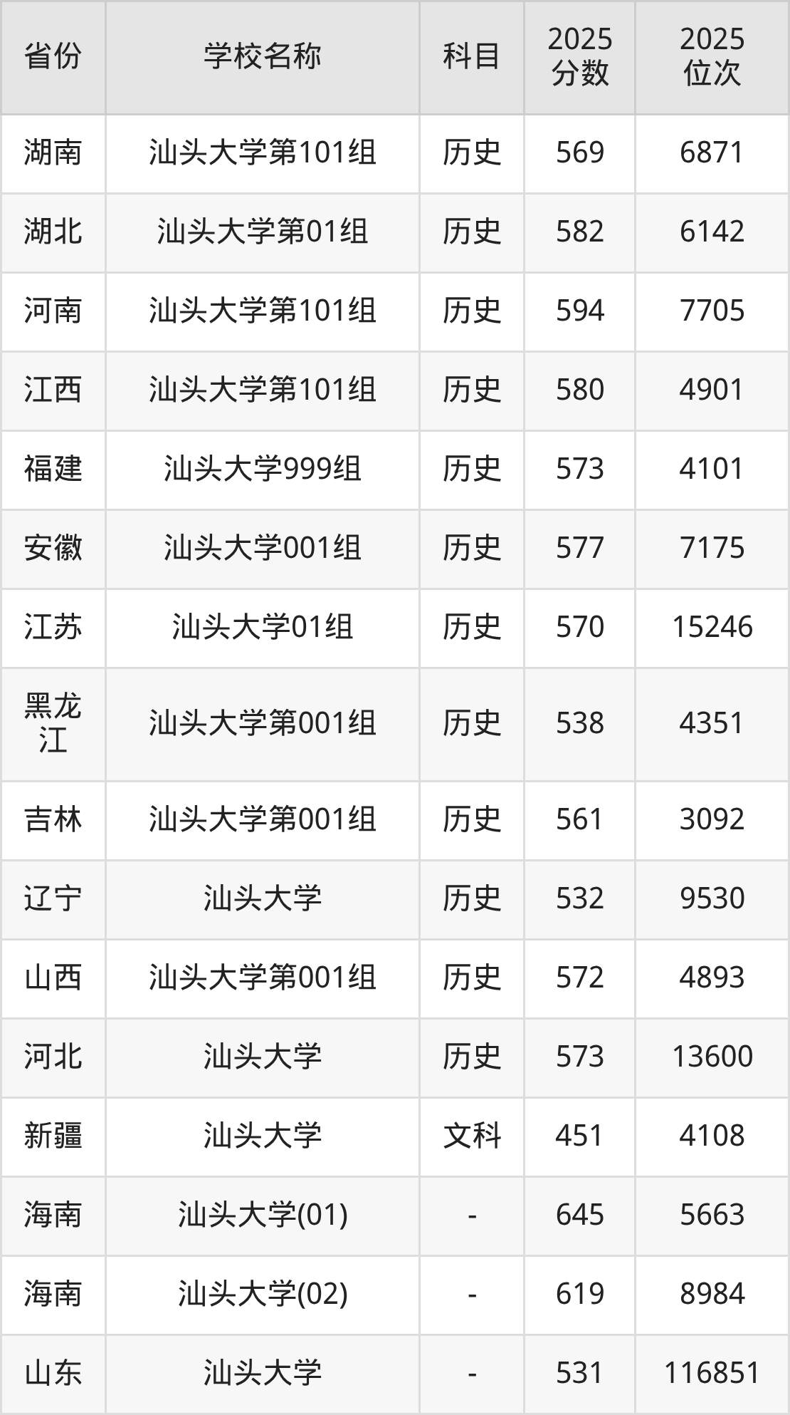 一、2025汕头大学录取分数线