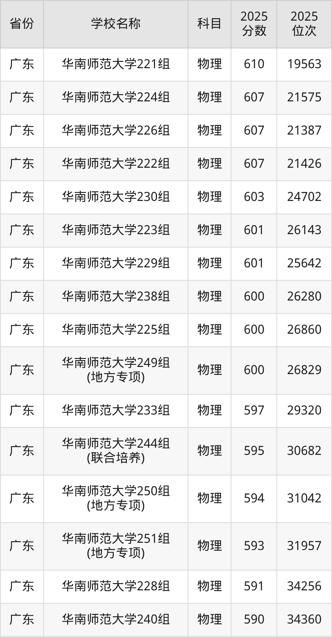 2、物理学专业:2025年最低596分、最低位次是11572