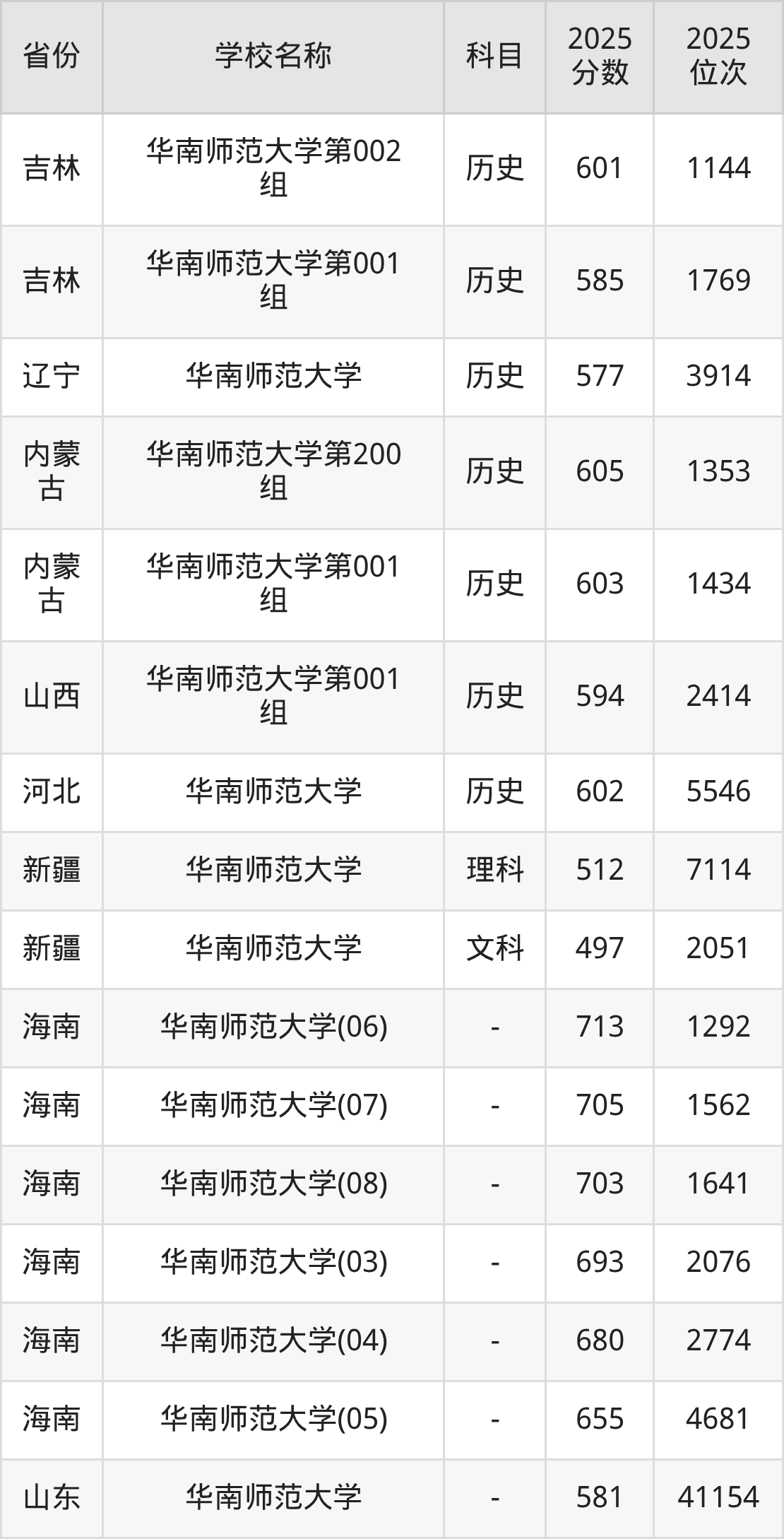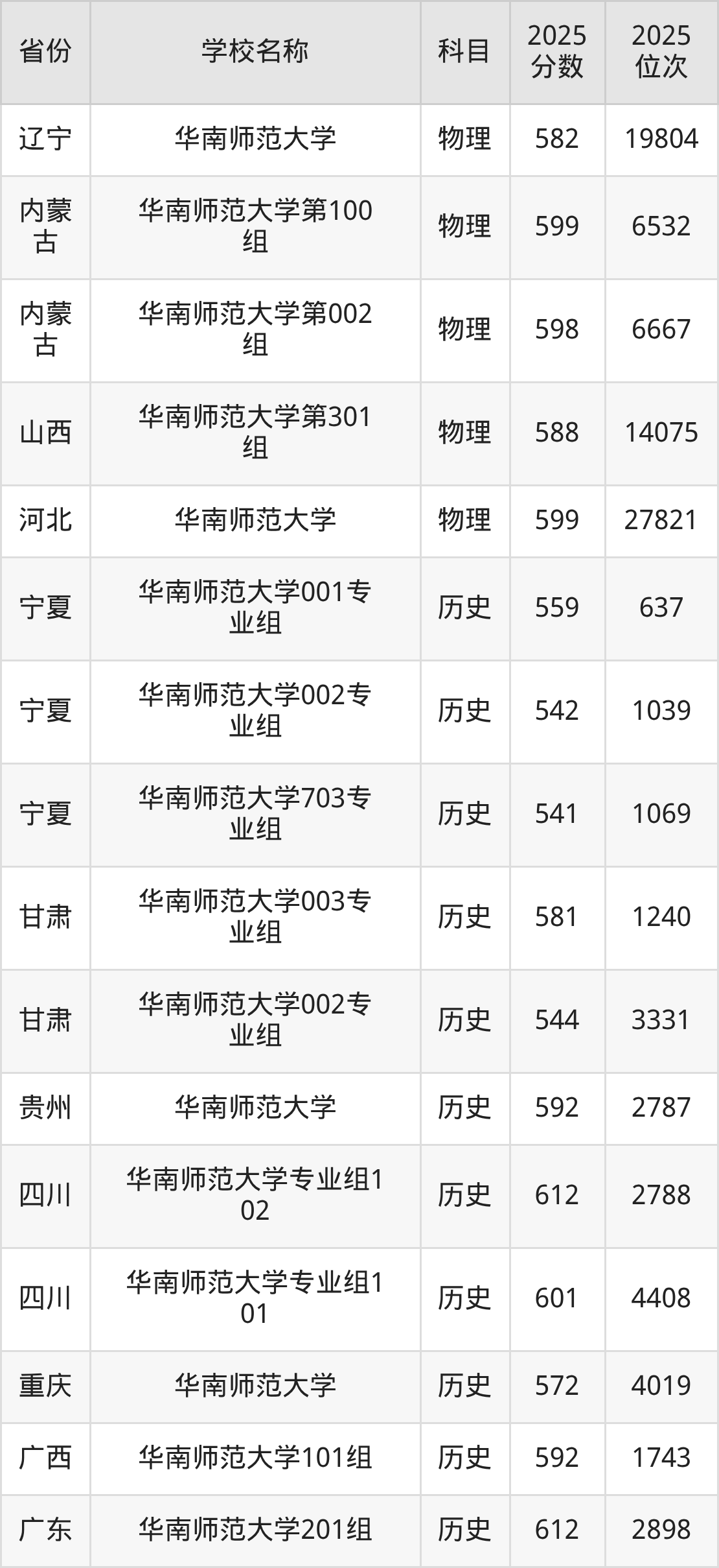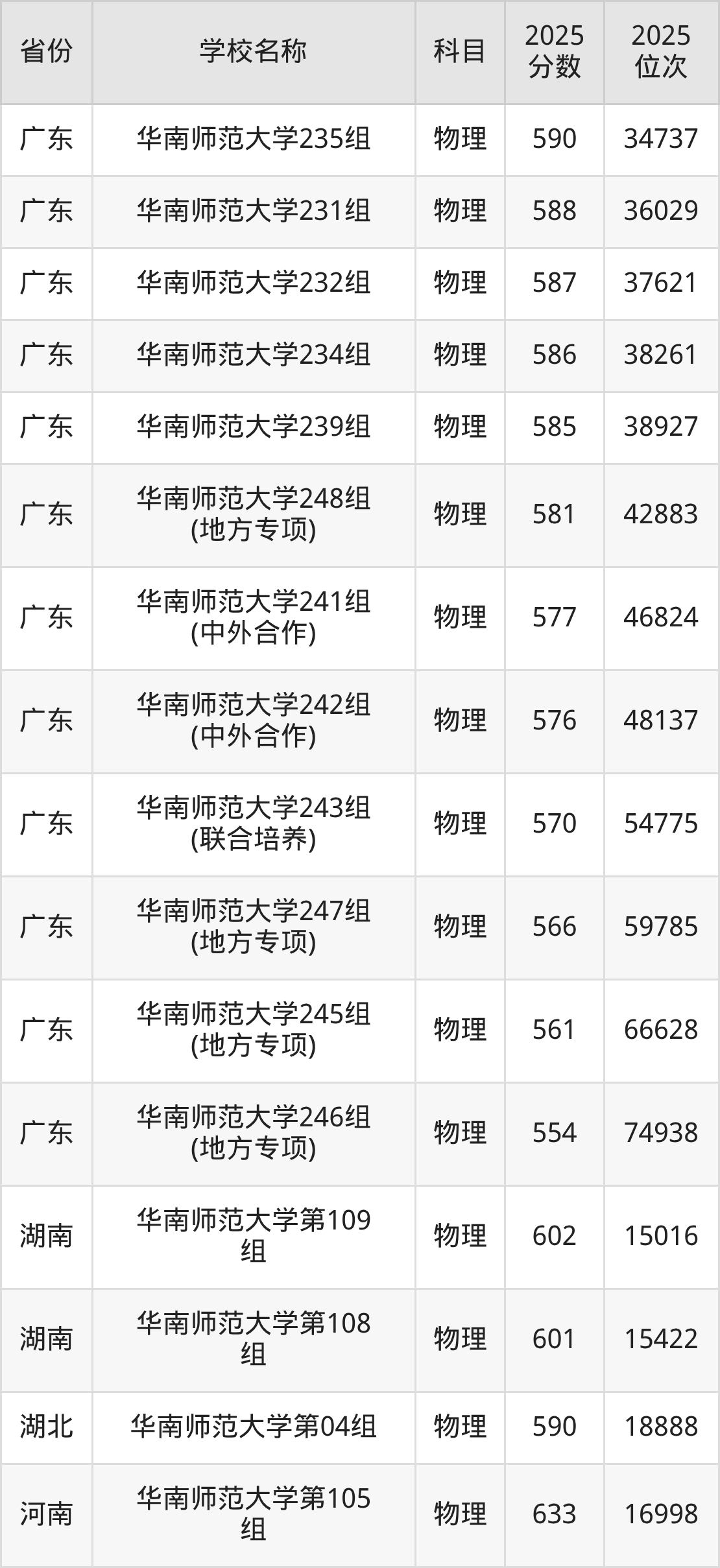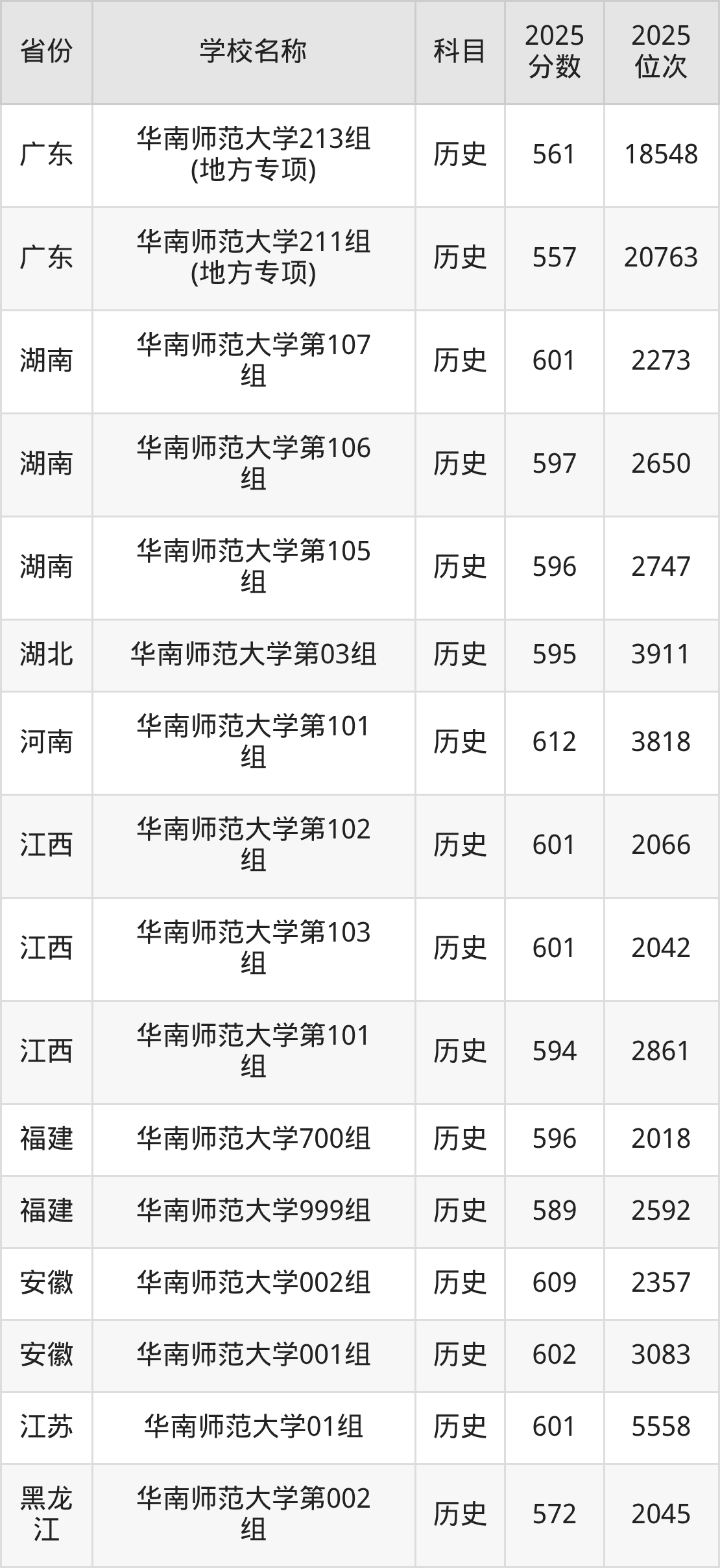 二、华南师范大学各专业录取分数线