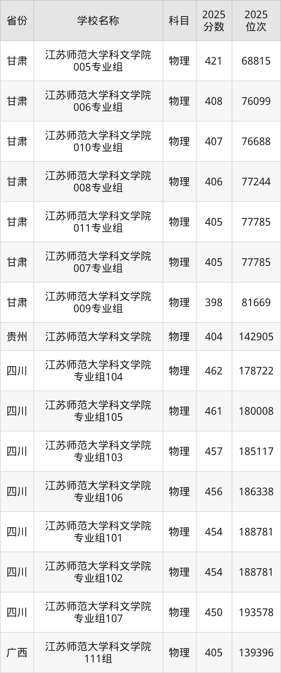 江苏师范大学科文学院2025年有8个专业组面向江苏省内首选了物理科目的考生招生: