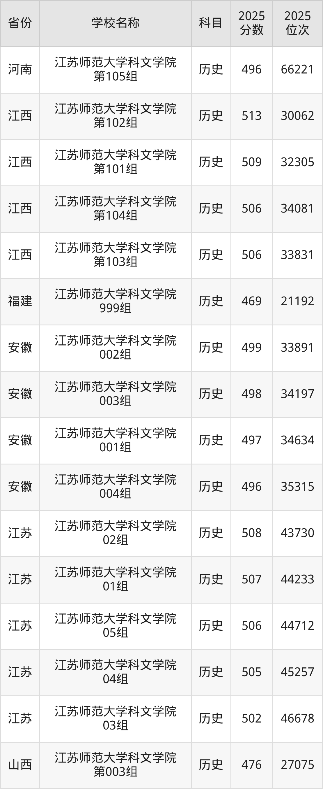 再看江苏高考2025年本科批次线,历史类是482分、物理类是463分。通过对比发现:江苏师范大学科文学院2025年历史类最低分比本科线高20分,物理类最低分比本科线高14分。2026届江苏高考生,可通过每一次模考划线,来判断自己的成绩是否有机会被江苏师范大学科文学院录取。