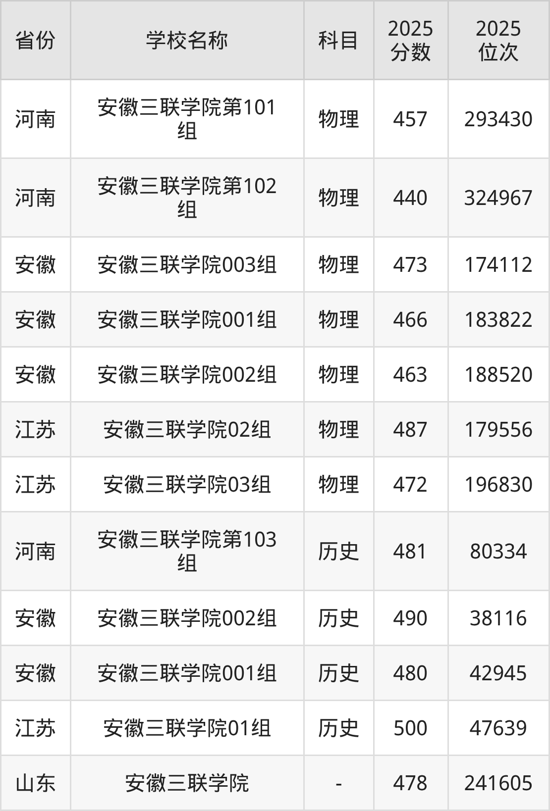 再看安徽高考2025年本科批次线,历史类是477分、物理类是461分。通过对比发现:安徽三联学院2025年历史类最低分比本科线高3分,物理类最低分比本科线高2分。2026届安徽高考生,可通过每一次模考划线,来判断自己的成绩是否有机会被安徽三联学院录取。