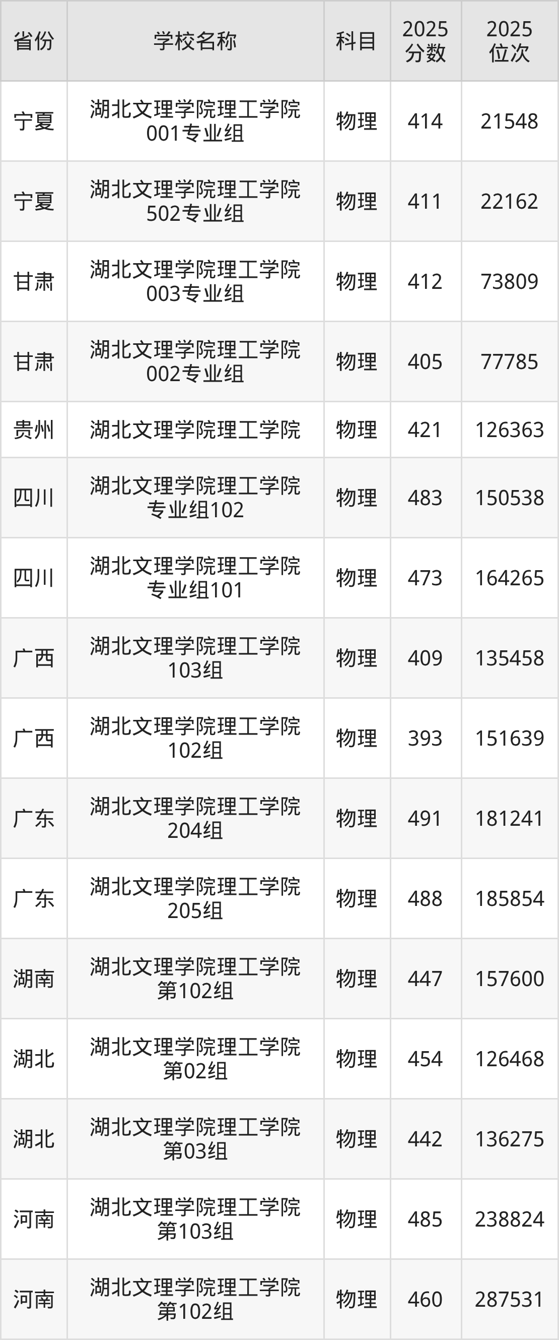湖北文理学院理工学院2025年有3个专业组面向湖北省内首选了物理科目的考生招生:
