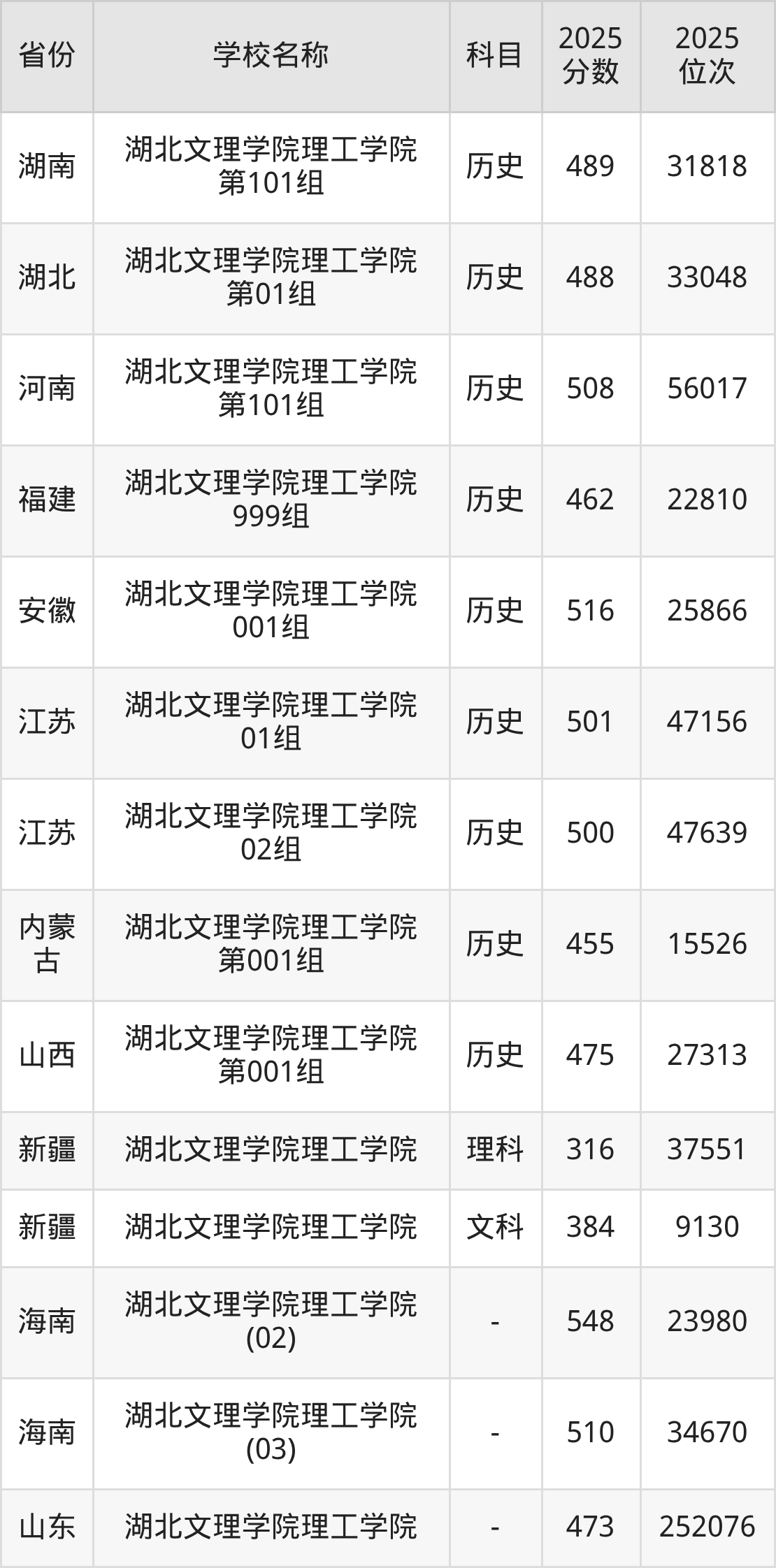 一、2025湖北文理学院理工学院录取分数线