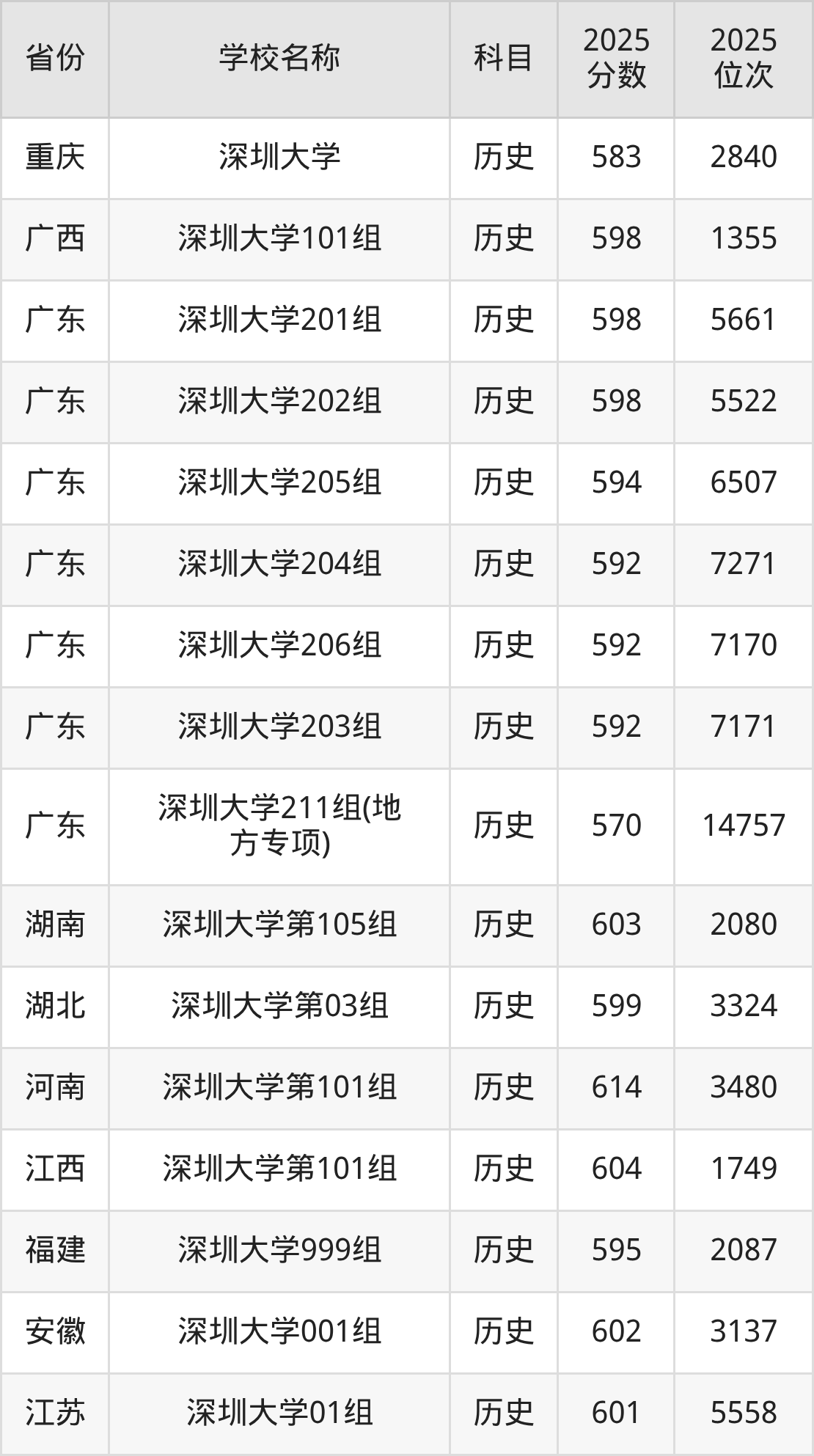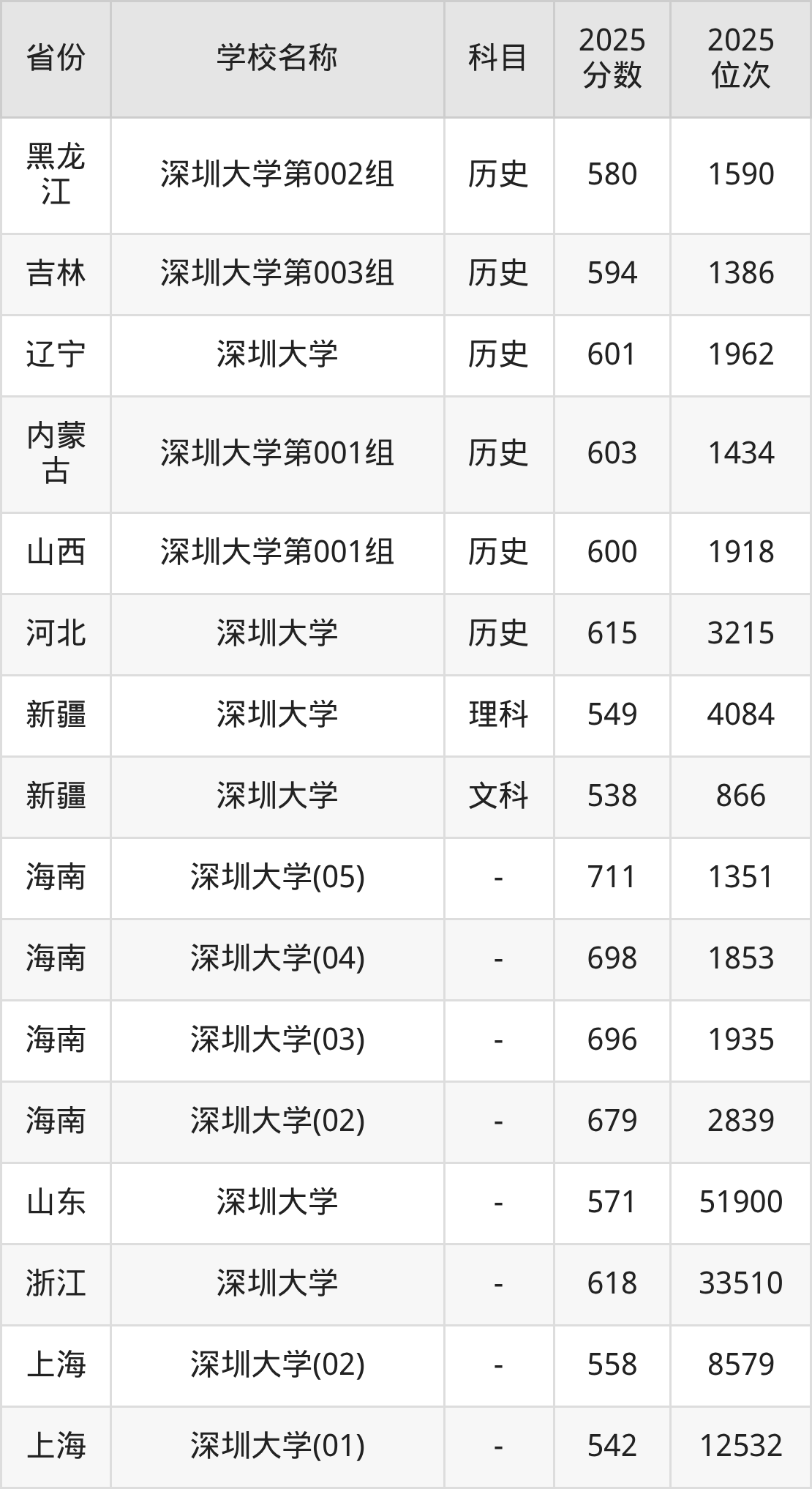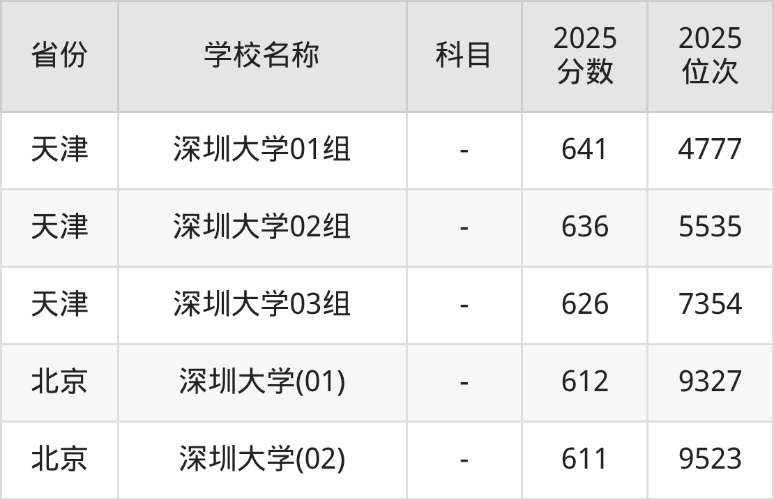一、2025深圳大学录取分数线