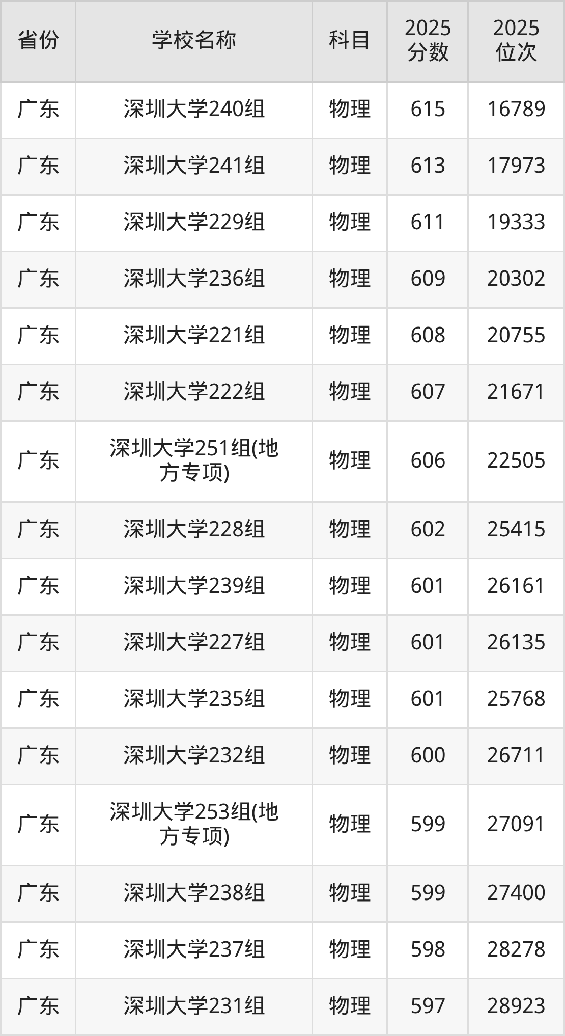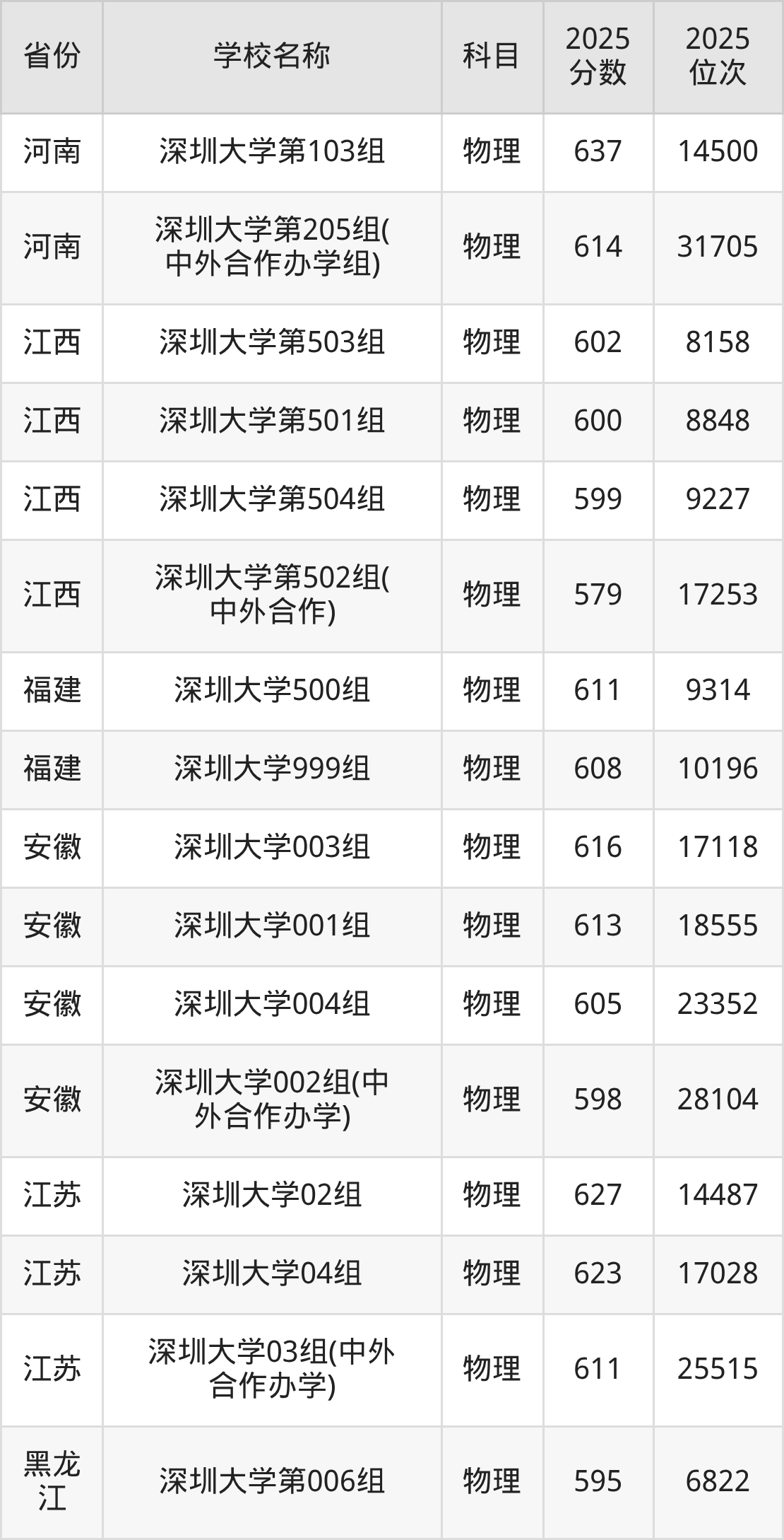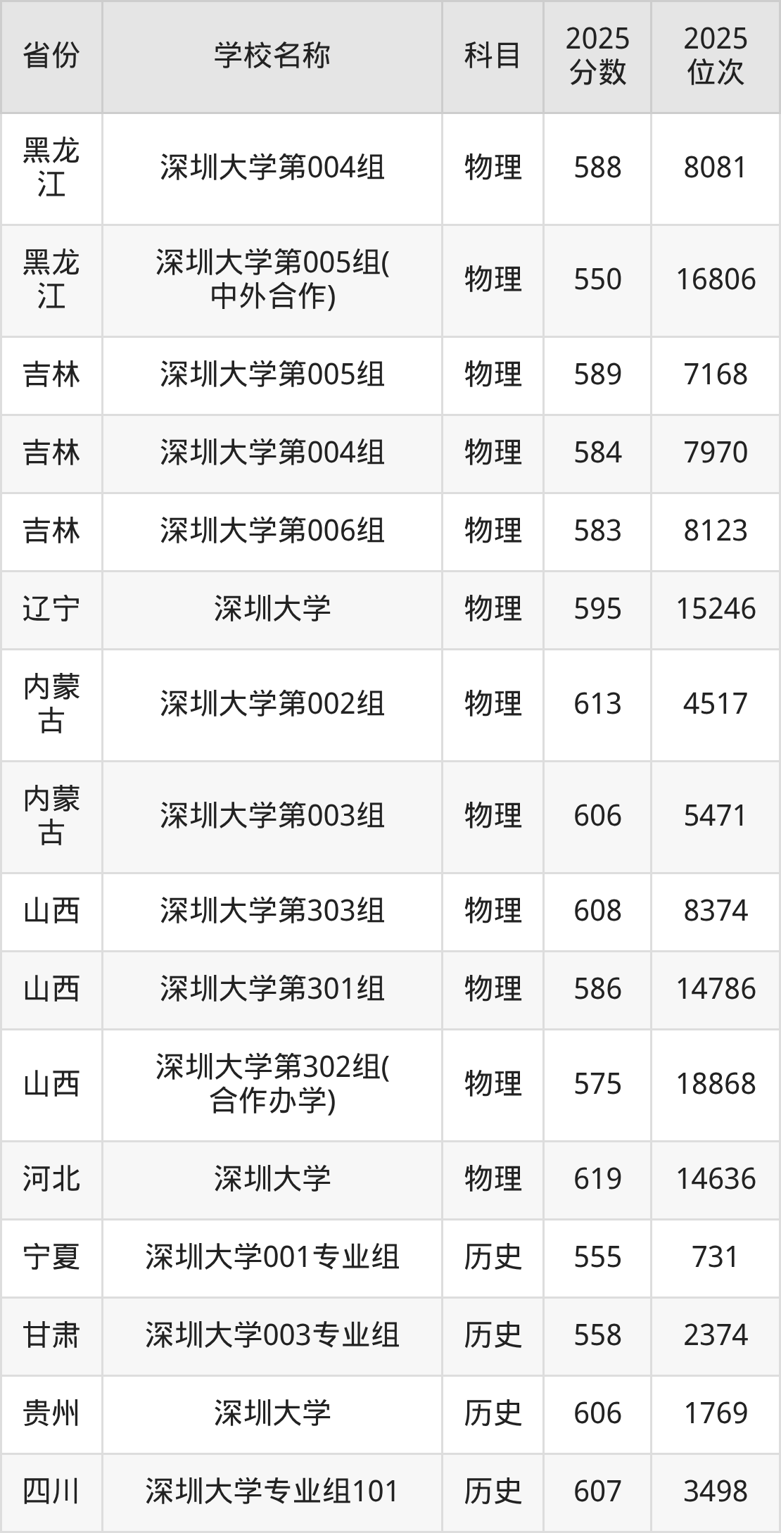 一、2025深圳大学录取分数线
