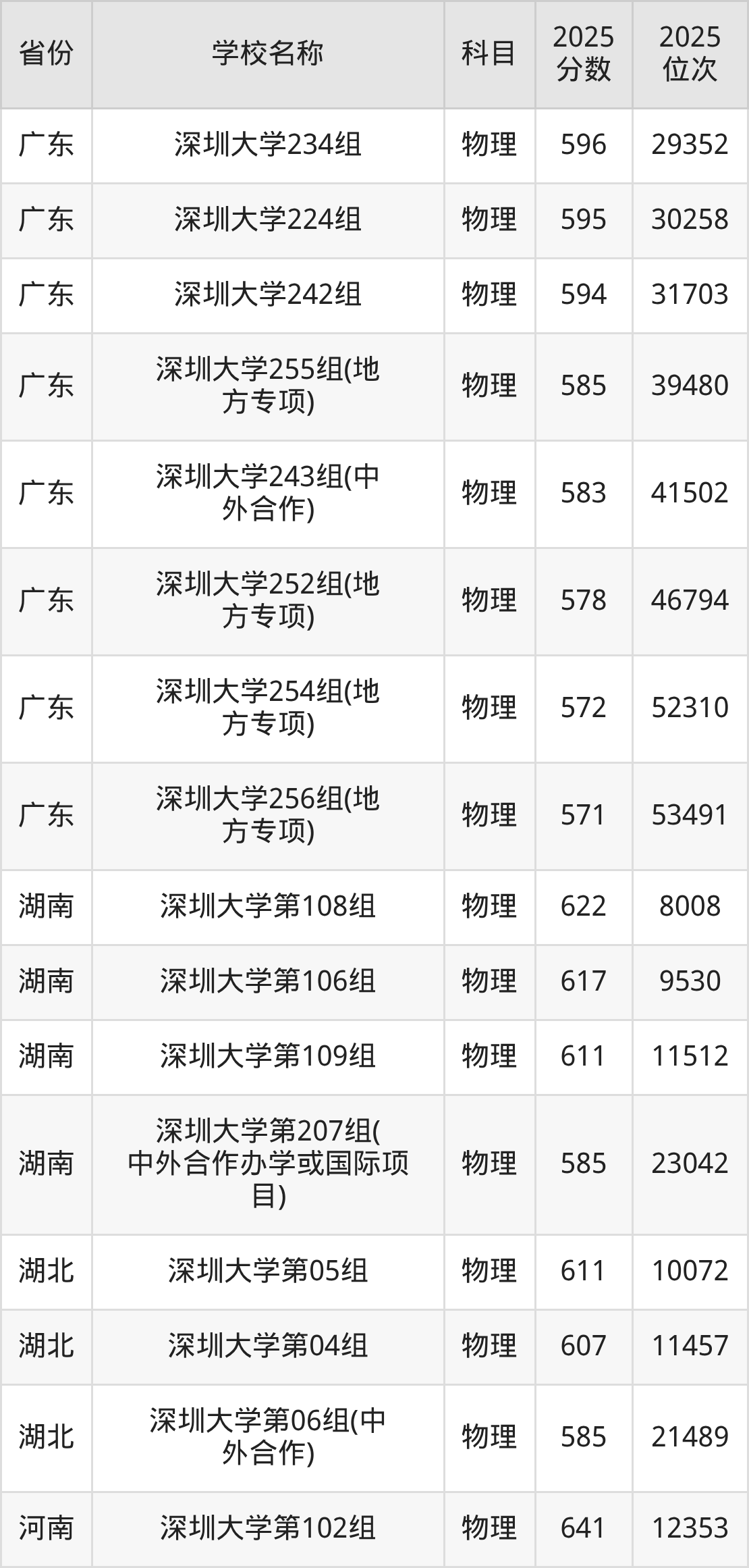 深圳大学2025年有30个专业组面向广东省内首选了物理科目的考生招生: