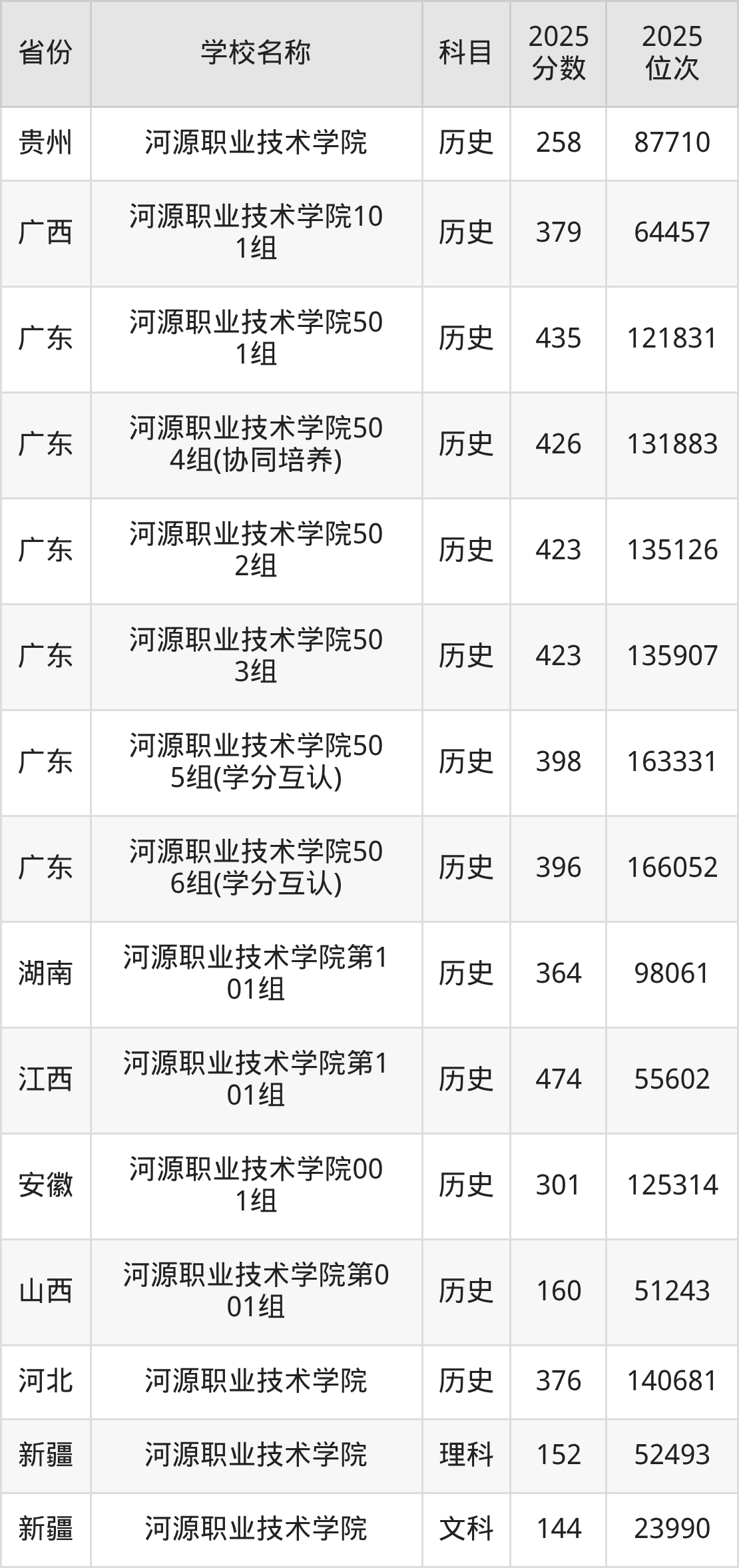 二、河源职业技术学院各专业录取分数线