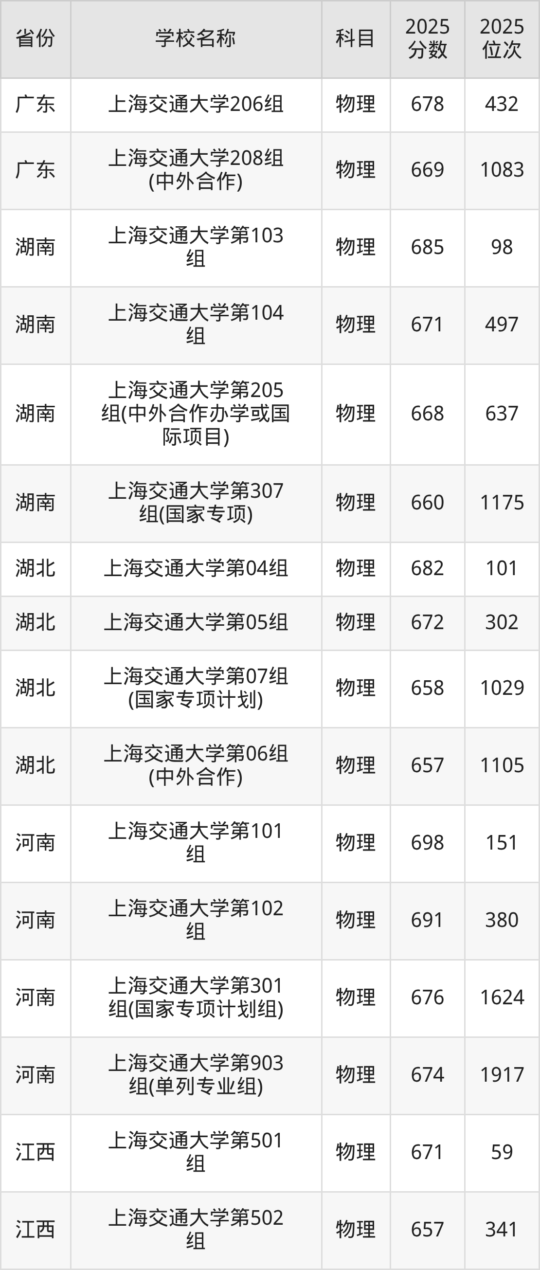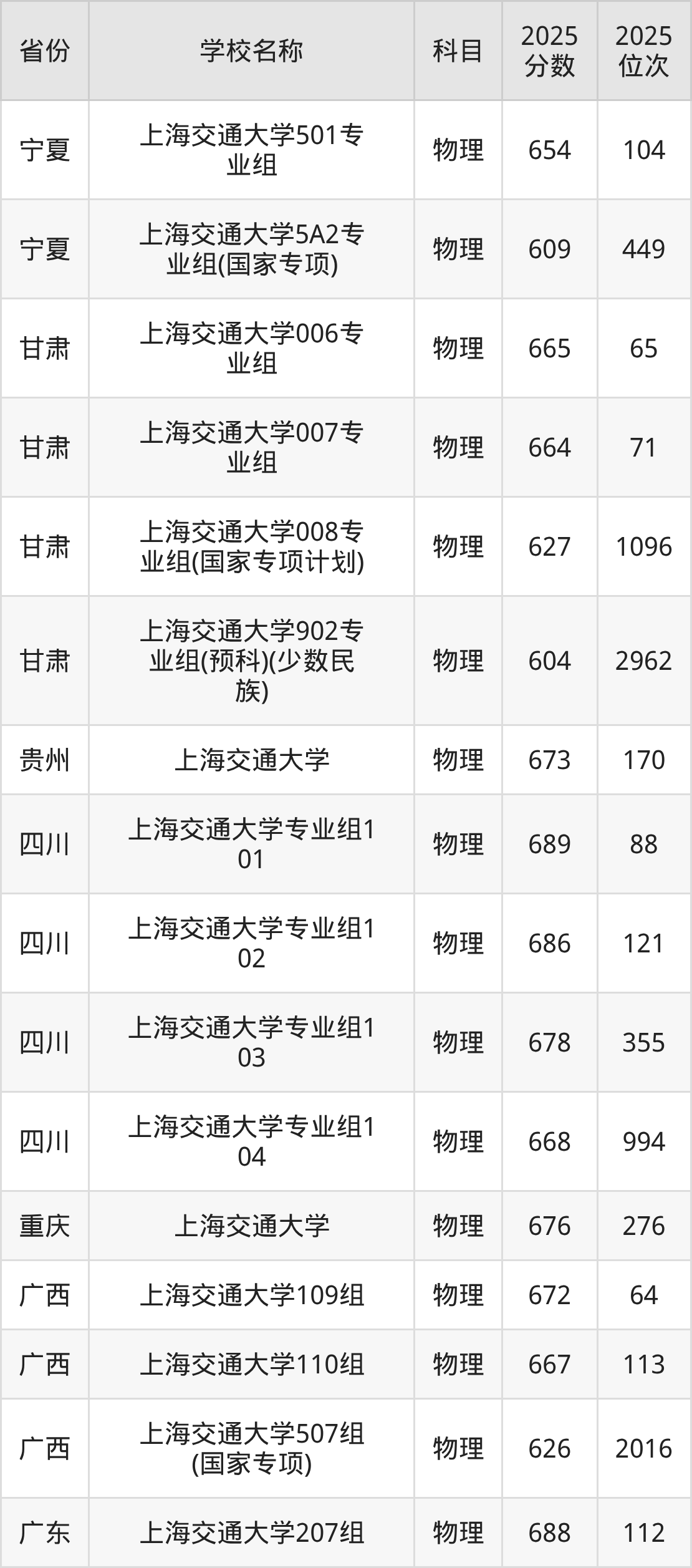 二、上海交通大学各专业录取分数线