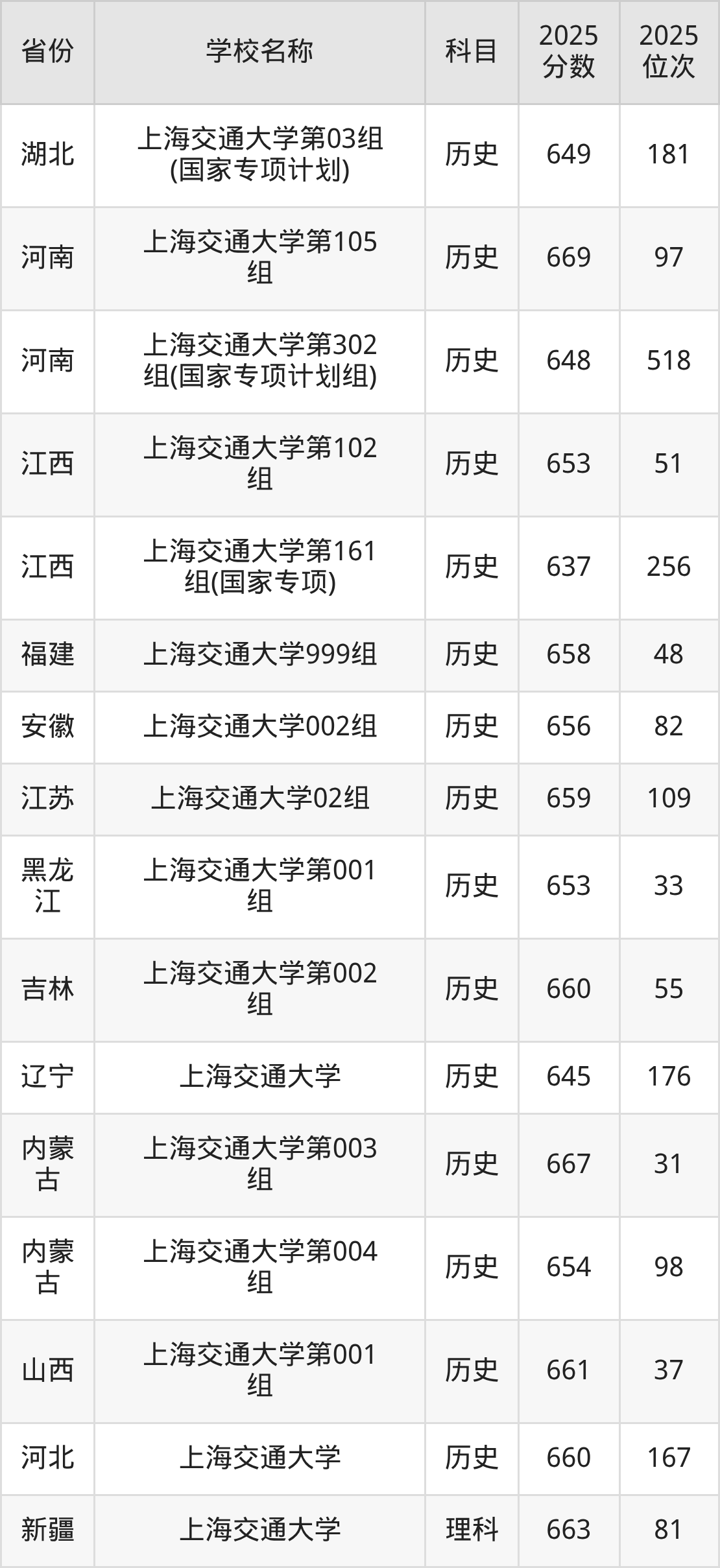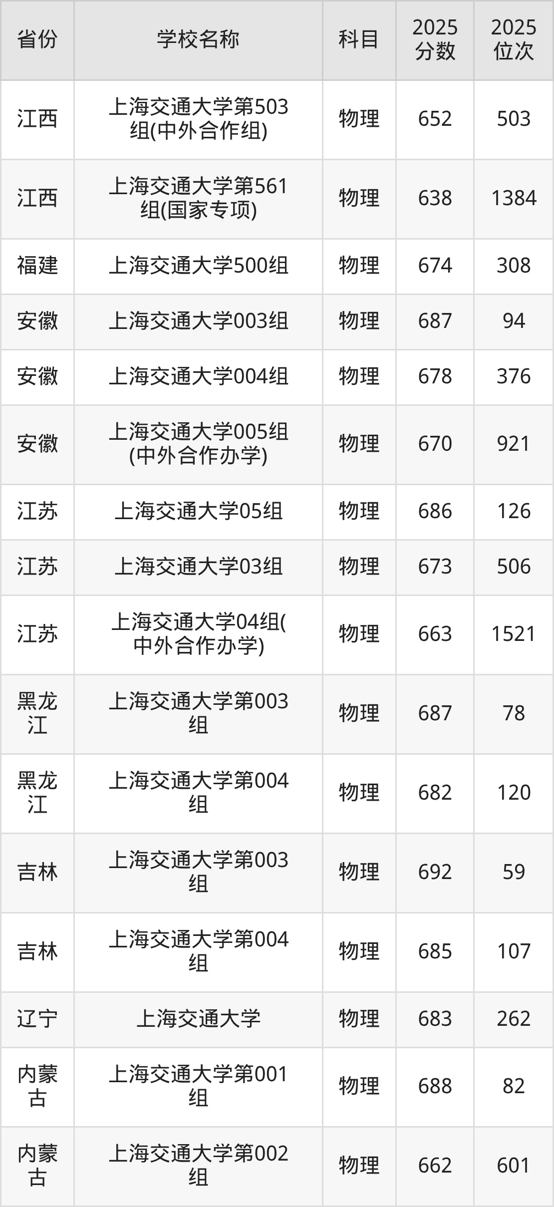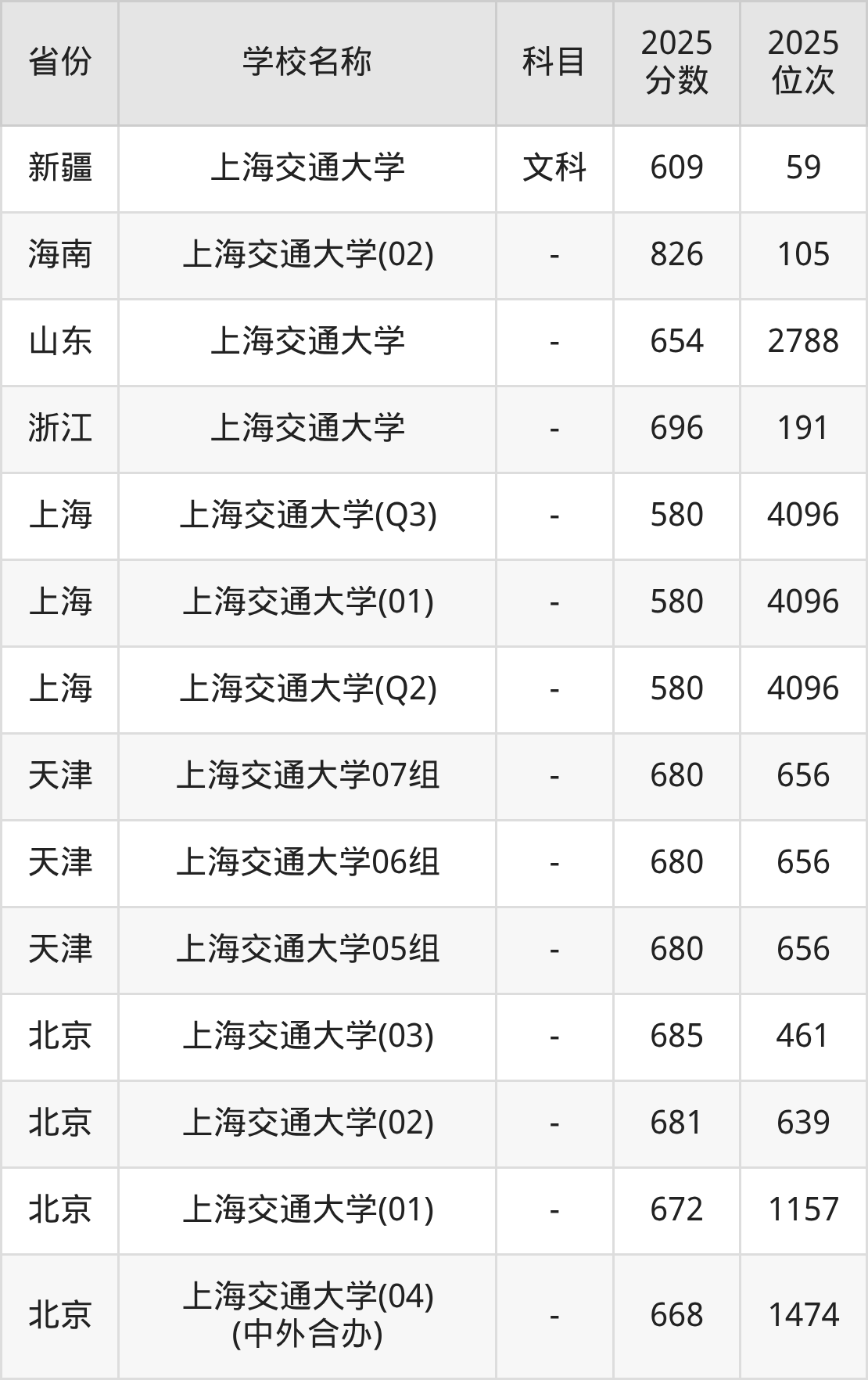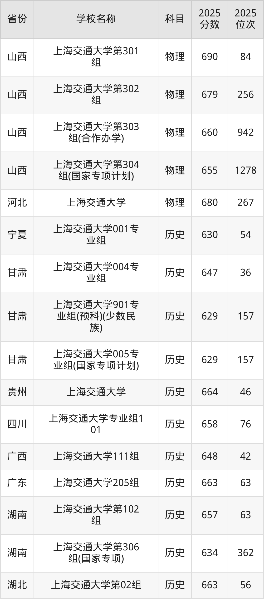 一、2025上海交通大学录取分数线
