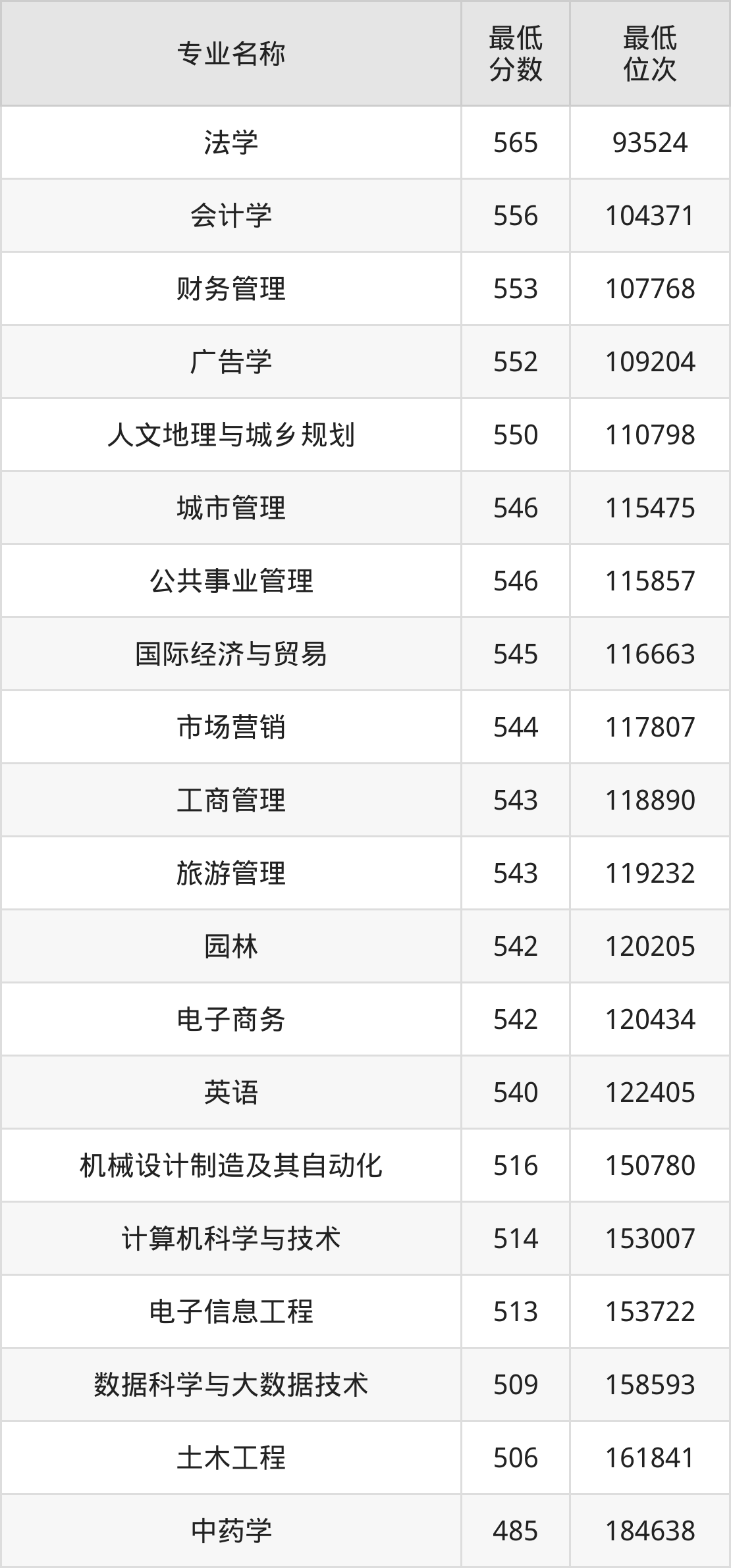 | 四川 | 文科本科二批 | —— | 495/485/486 |