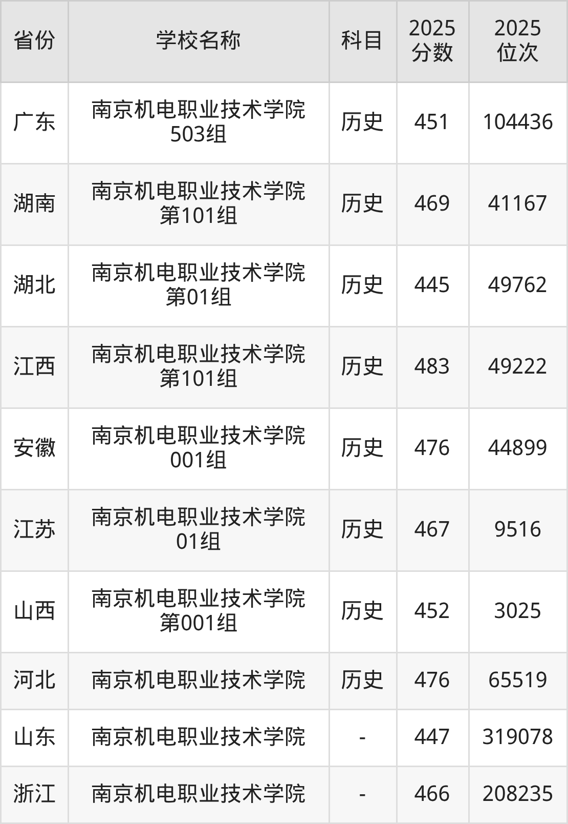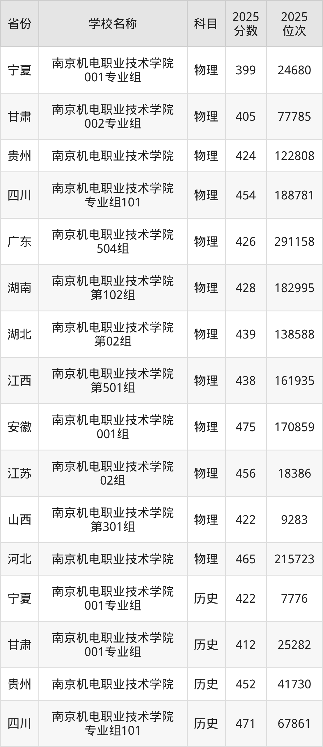 2025年南京机电职业技术学院在全国各省专科的最低录取分数线在399~483分之间。安徽物理类高考生最低475分能上南京机电职业技术学院、浙江高考生最低466分能上南京机电职业技术学院……下文将展示南京机电职业技术学院在全国14个高考省份中的专科最低投档录取分汇总!