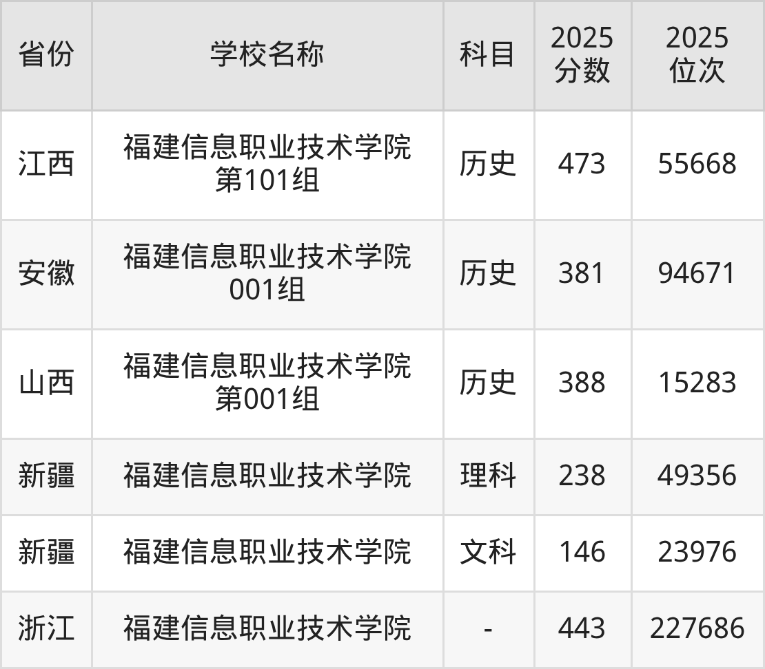 2025年福建信息职业技术学院在全国各省专科的最低录取分数线在146~473分之间。浙江高考生最低443分能上福建信息职业技术学院、四川物理类高考生最低429分能上福建信息职业技术学院……下文将展示福建信息职业技术学院在全国12个高考省份中的专科最低投档录取分汇总!