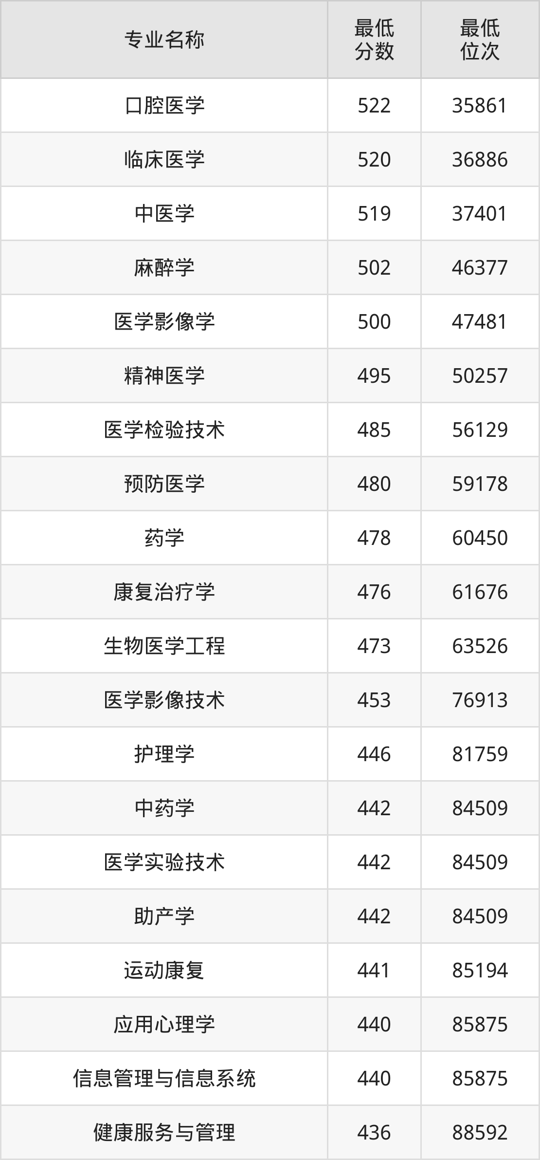 长治医学院2024年在山西理科各专业的录取分数线是:436分-522分。