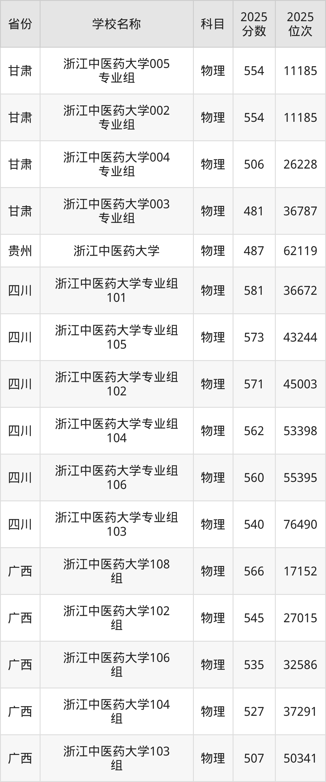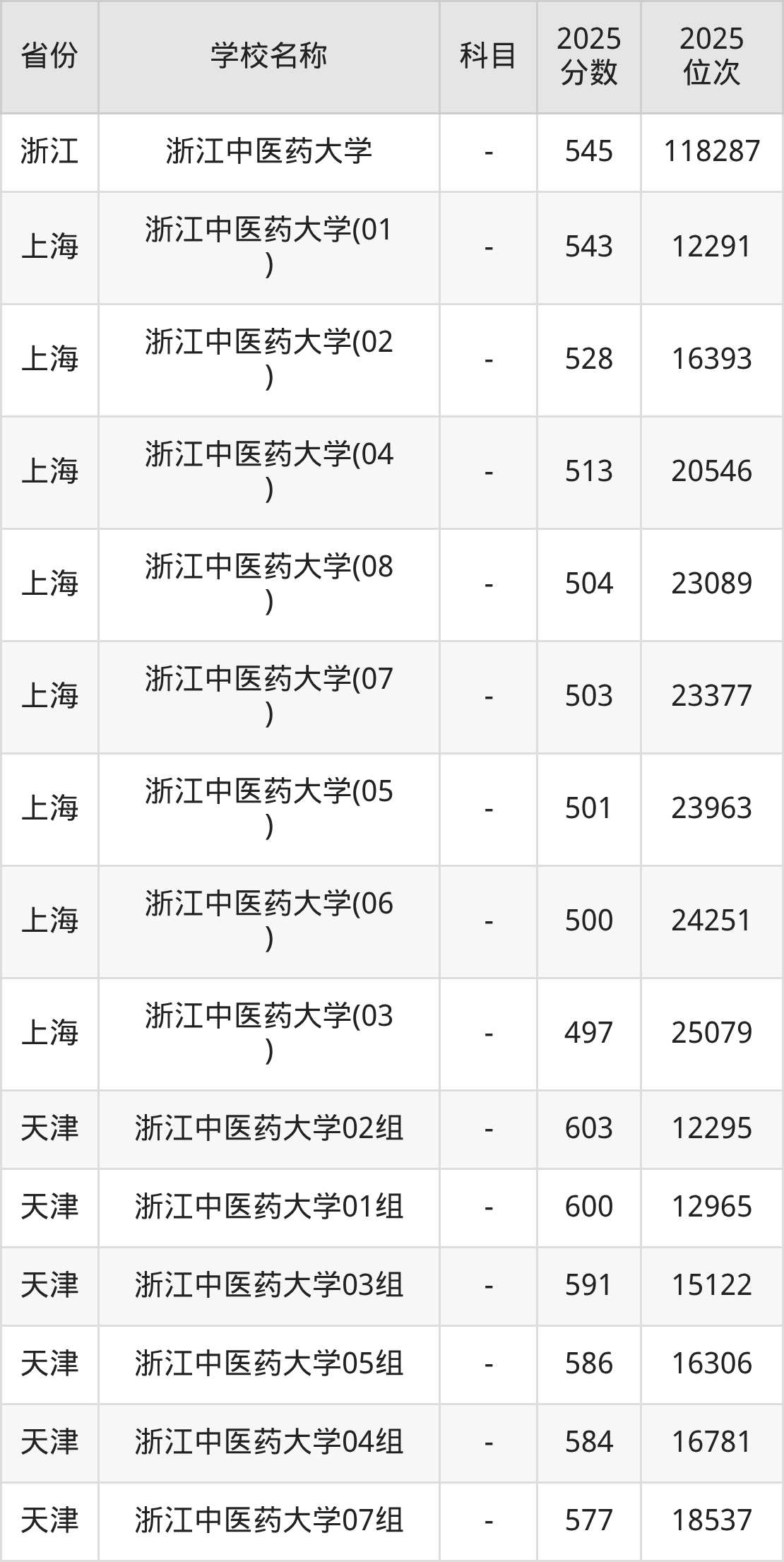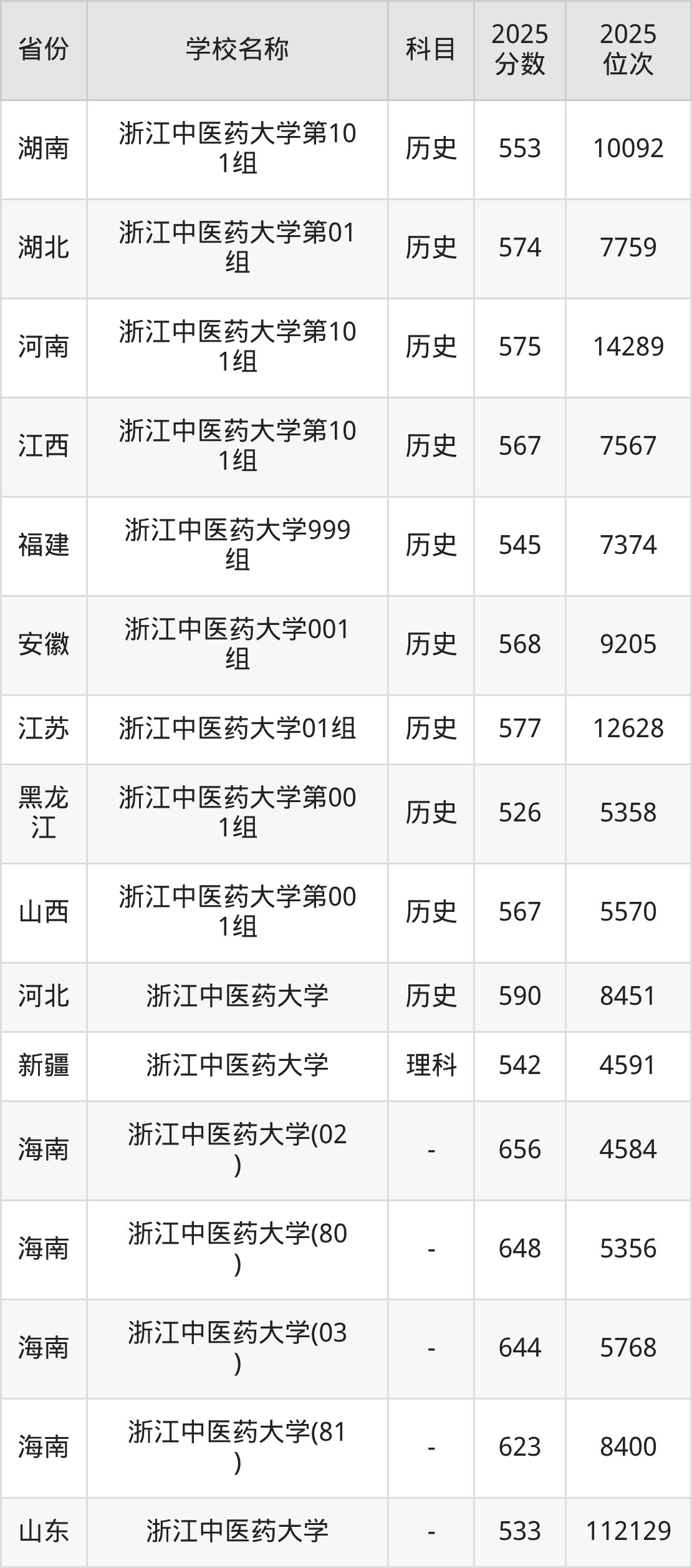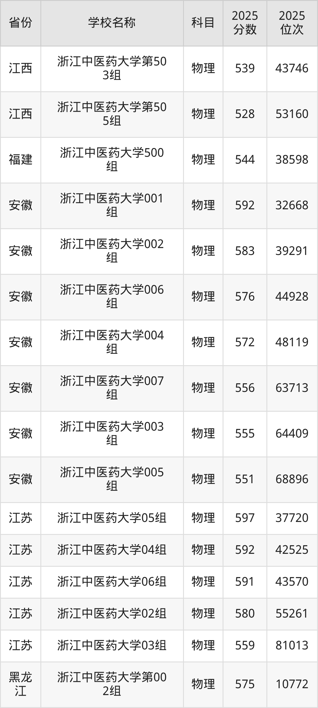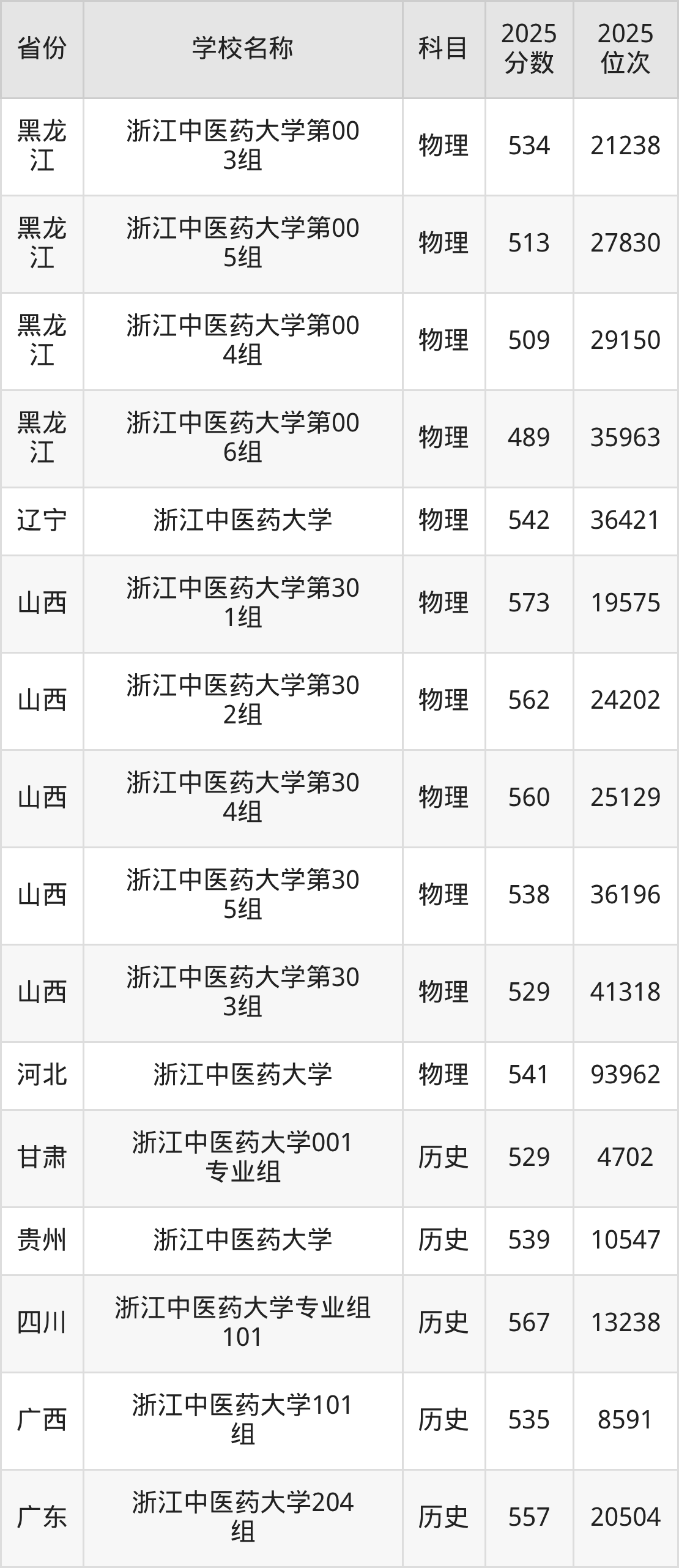 二、浙江中医药大学各专业录取分数线