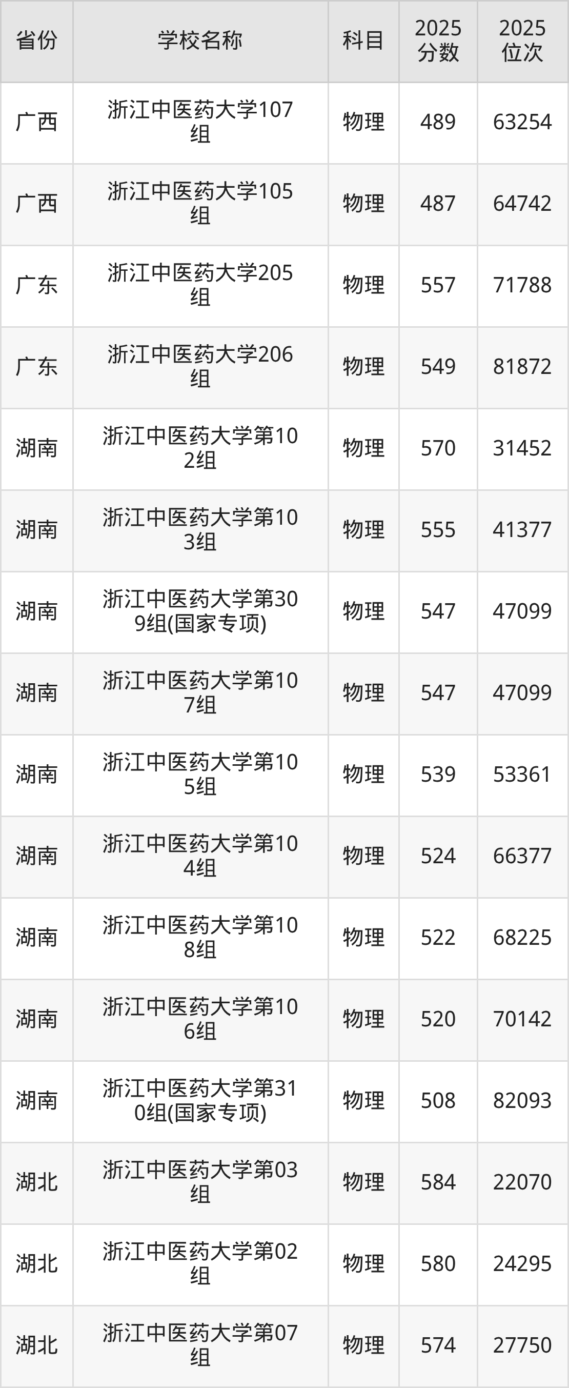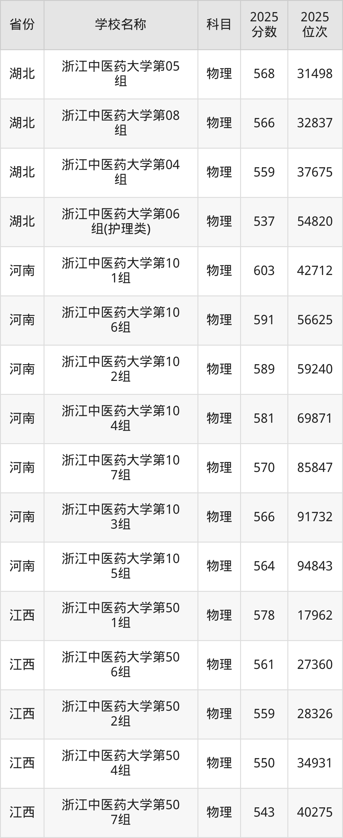 16、康复治疗学专业:2025年最低573分、最低位次是83617