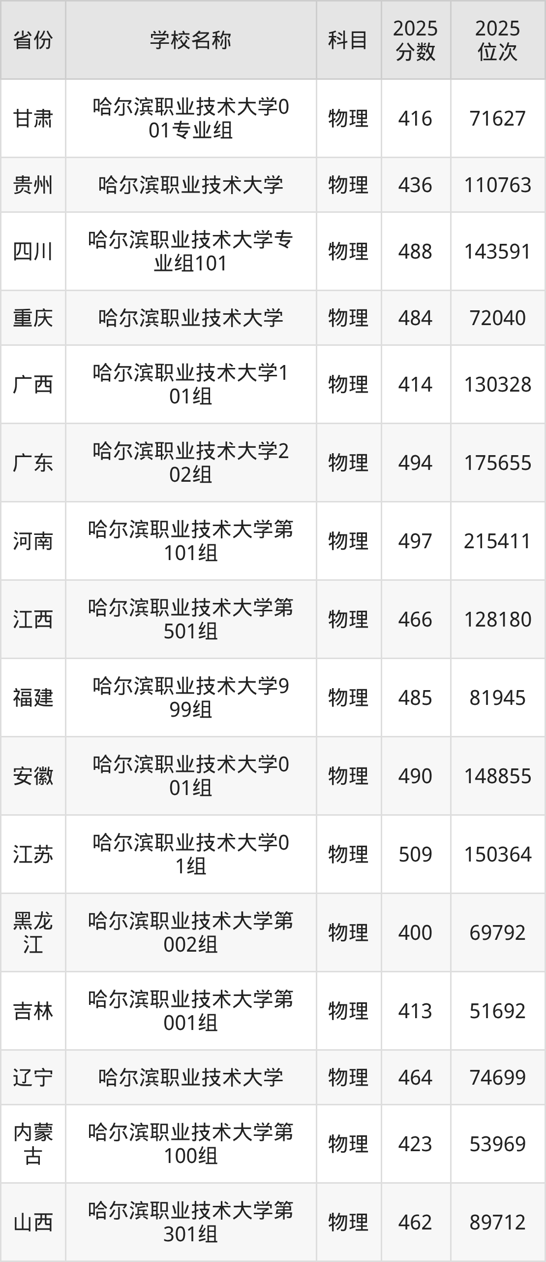 哈尔滨职业技术大学2025年有4个专业组面向黑龙江省内首选了物理科目的考生招生: