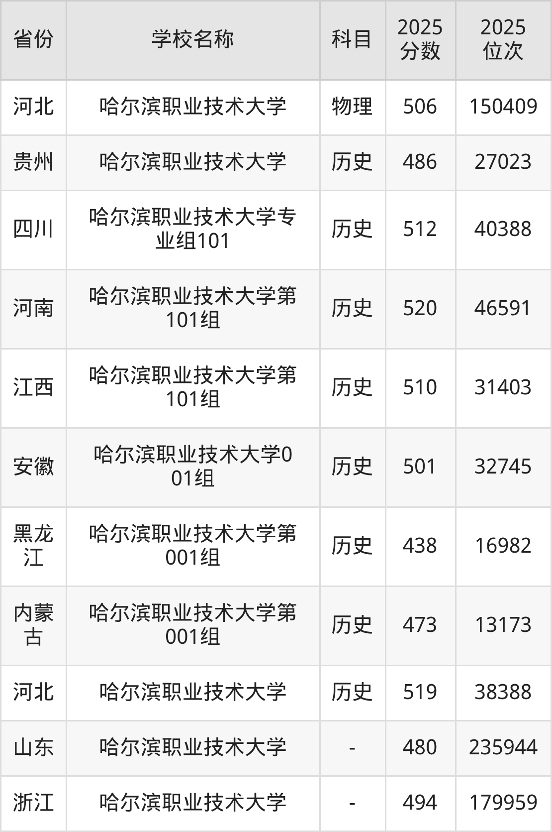 一、2025哈尔滨职业技术大学录取分数线