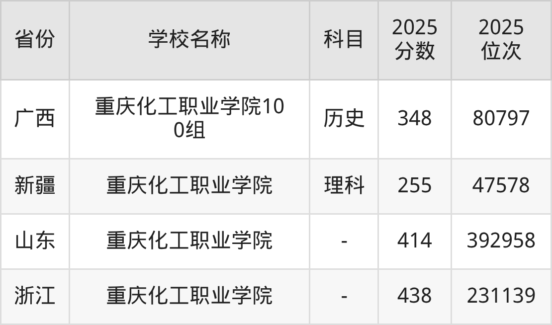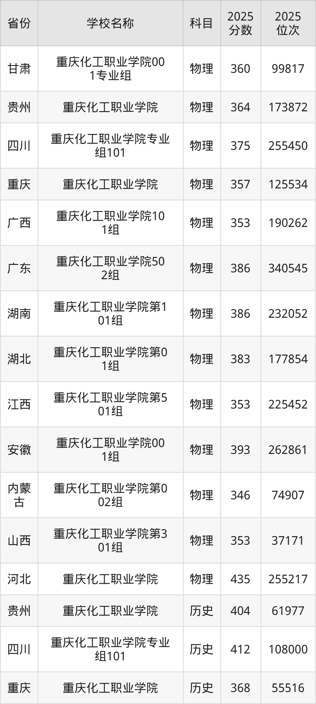 2025年重庆化工职业学院在全国各省专科的最低录取分数线在255~438分之间。浙江高考生最低438分能上重庆化工职业学院、河北物理类高考生最低435分能上重庆化工职业学院……下文将展示重庆化工职业学院在全国16个高考省份中的专科最低投档录取分汇总!