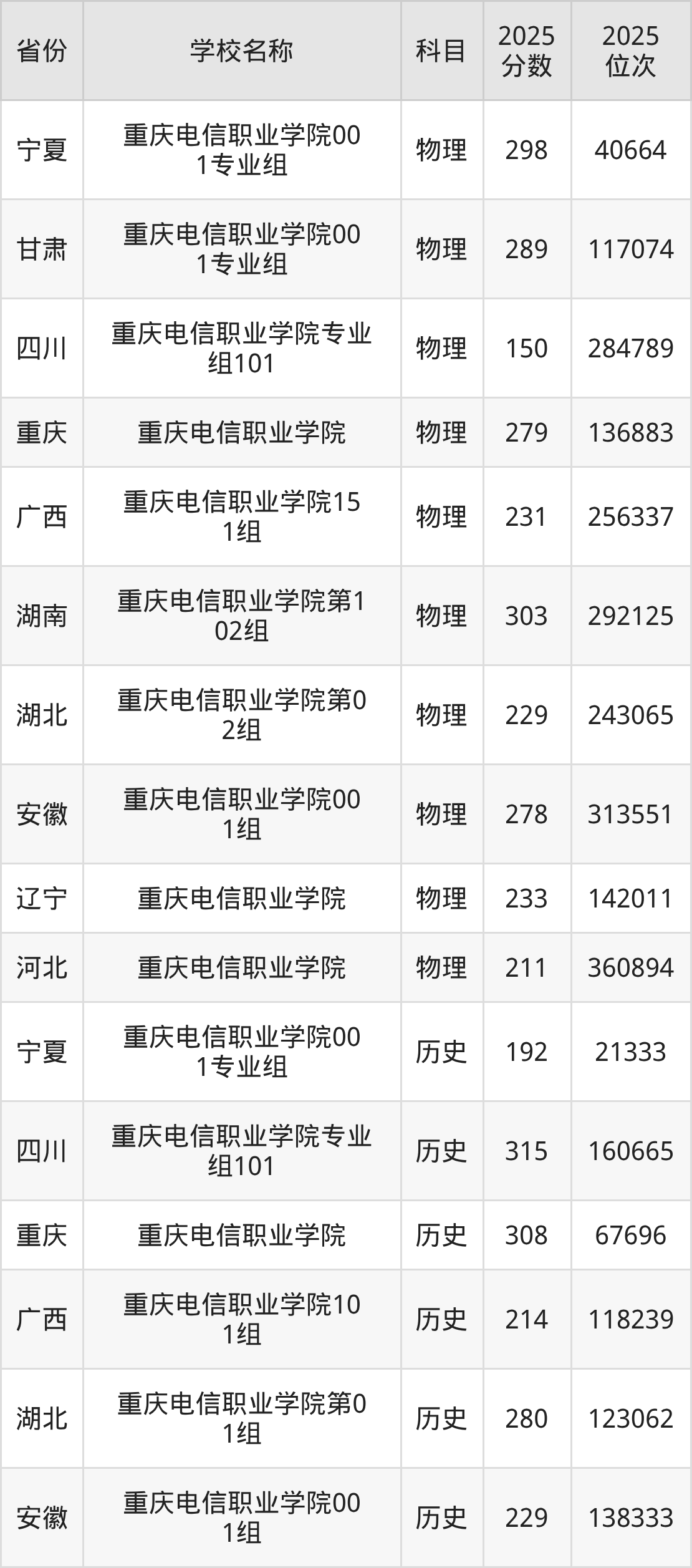 二、重庆电信职业学院各专业录取分数线