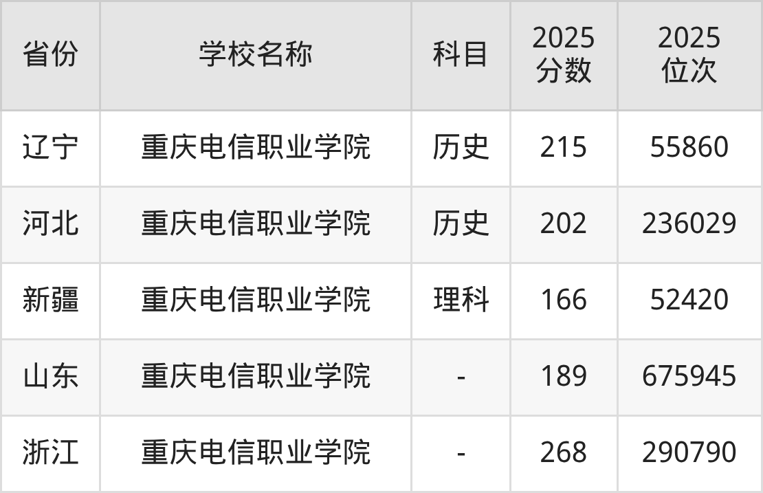 一、2025重庆电信职业学院录取分数线