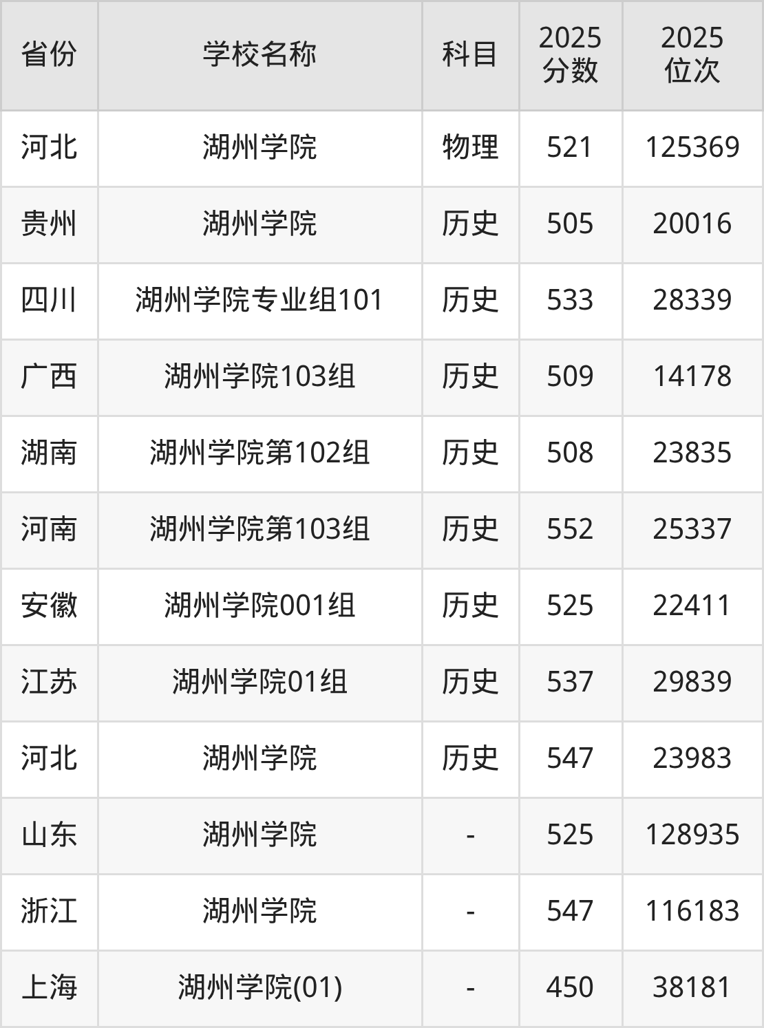 2025年湖州学院在全国各省本科的最低录取分数线在450~554分之间。河南物理类高考生最低554分能上湖州学院、浙江高考生最低547分能上湖州学院……下文将展示湖州学院在全国19个高考省份中的本科最低投档录取分汇总!