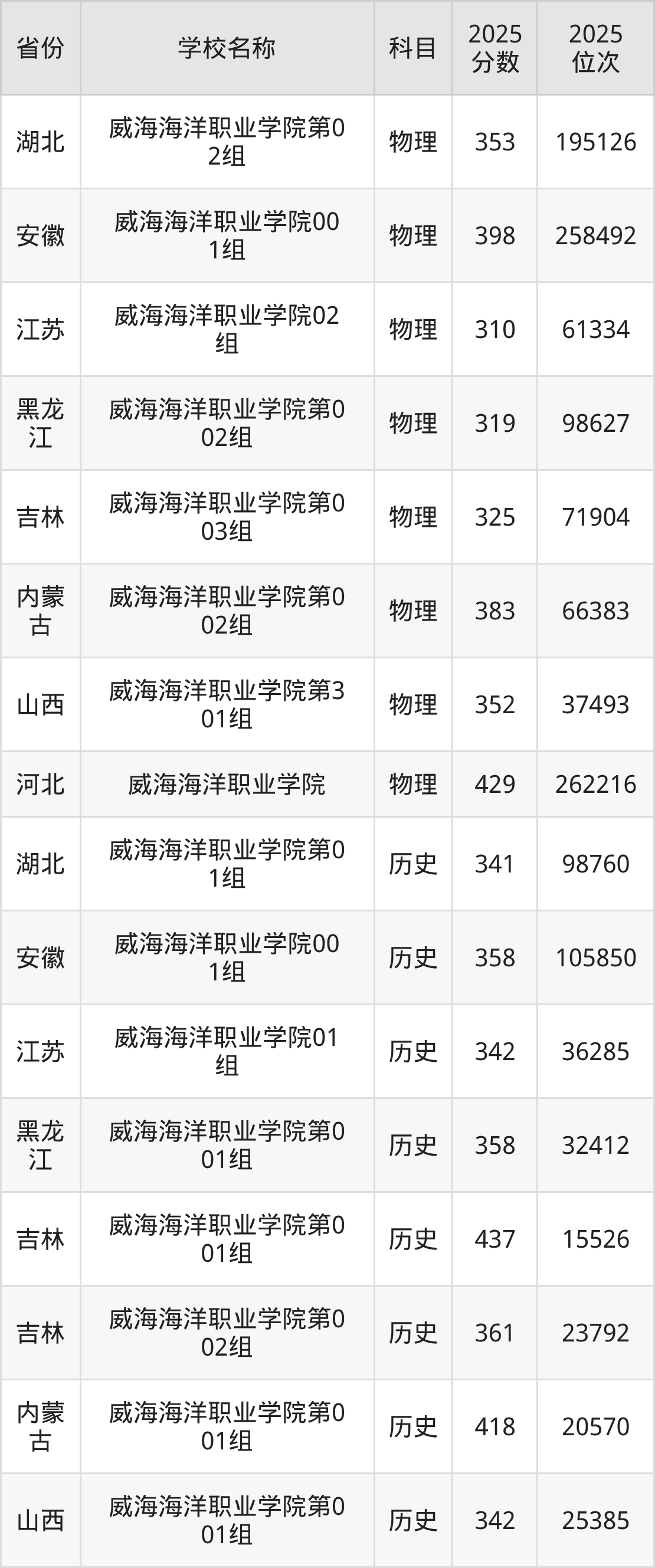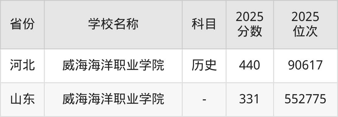 一、2025威海海洋职业学院录取分数线