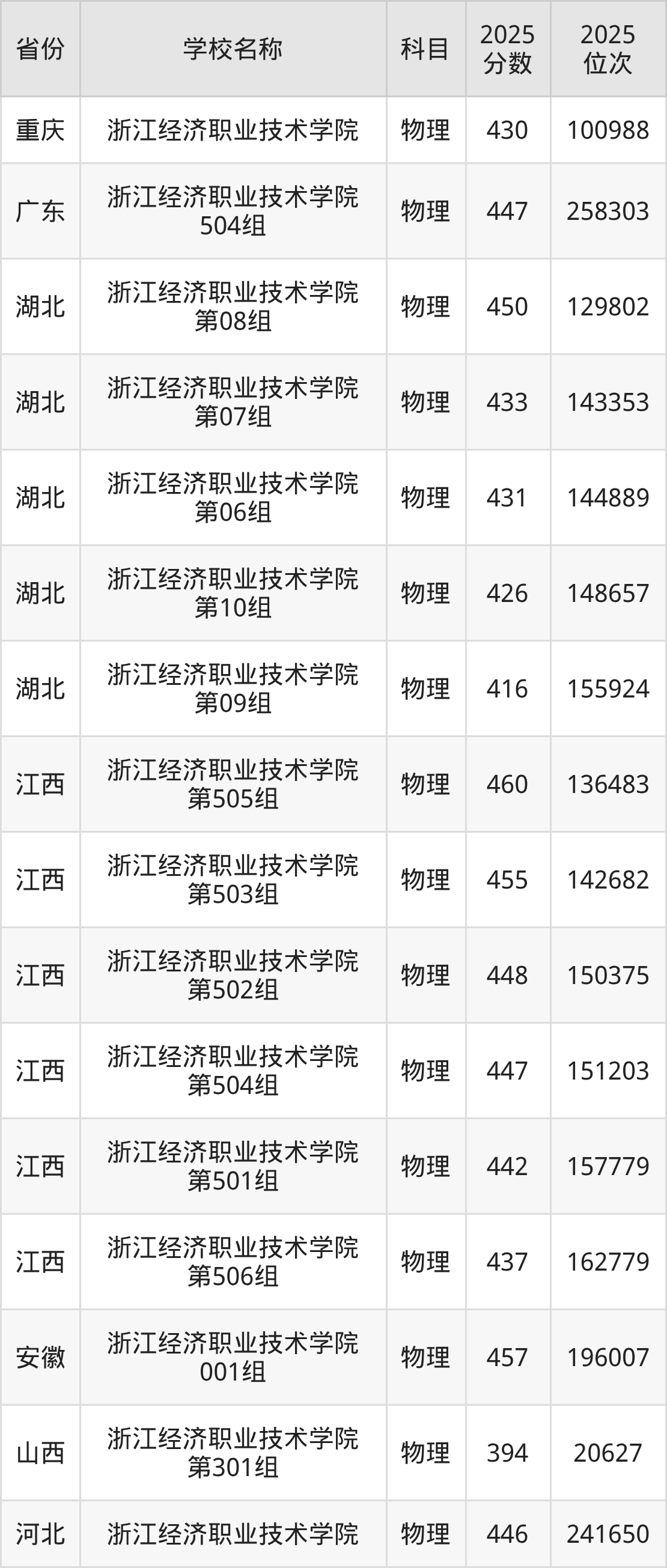 2025年浙江经济职业技术学院在全国各省专科的最低录取分数线在394~500分之间。山东高考生最低462分能上浙江经济职业技术学院、江西物理类高考生最低460分能上浙江经济职业技术学院……下文将展示浙江经济职业技术学院在全国8个高考省份中的专科最低投档录取分汇总!