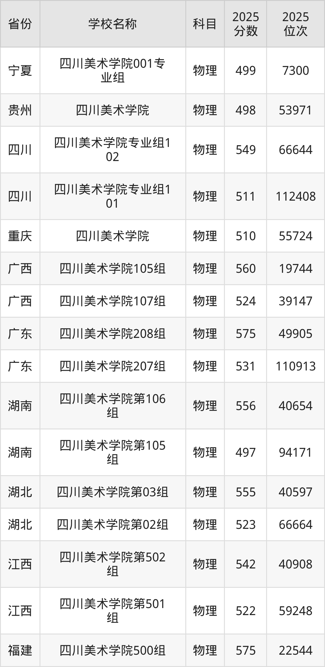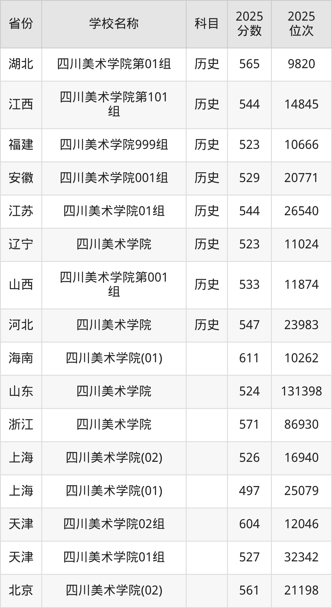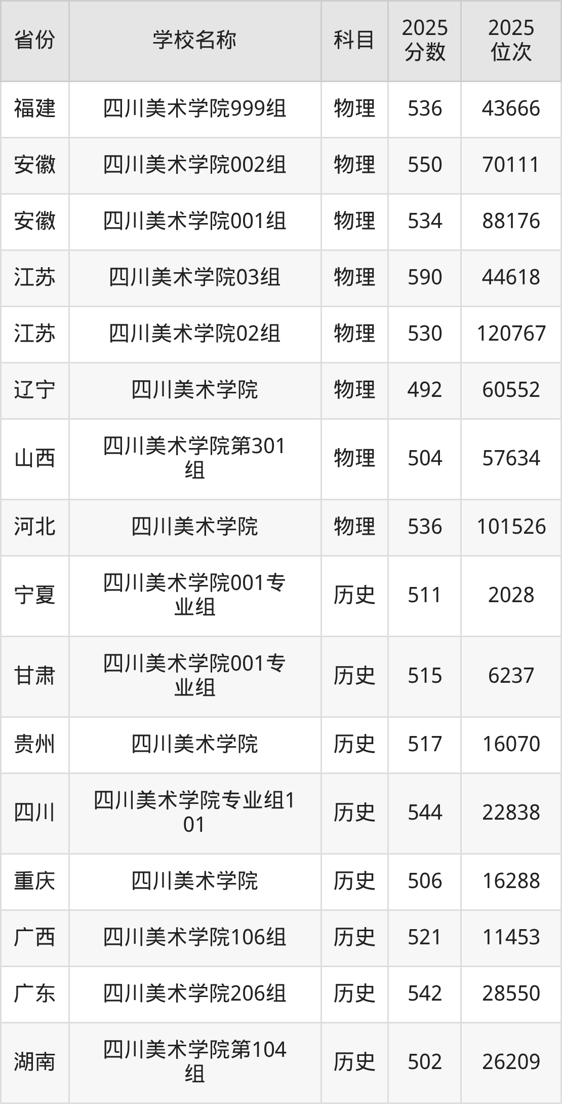 二、四川美术学院各专业录取分数线